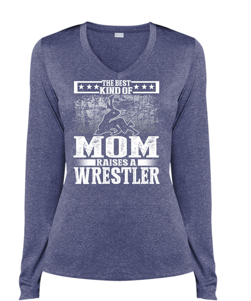 The Best Kind Of Mom T Shirt, Raises A Wrestler T Shirt, Cool Shirt (Ladies LS Heather V-Neck)