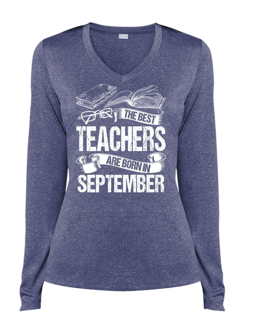 The Best Teachers Are Born In September T Shirt, Being A Teacher T Shirt, Cool Shirt (Ladies LS Heather V-Neck)