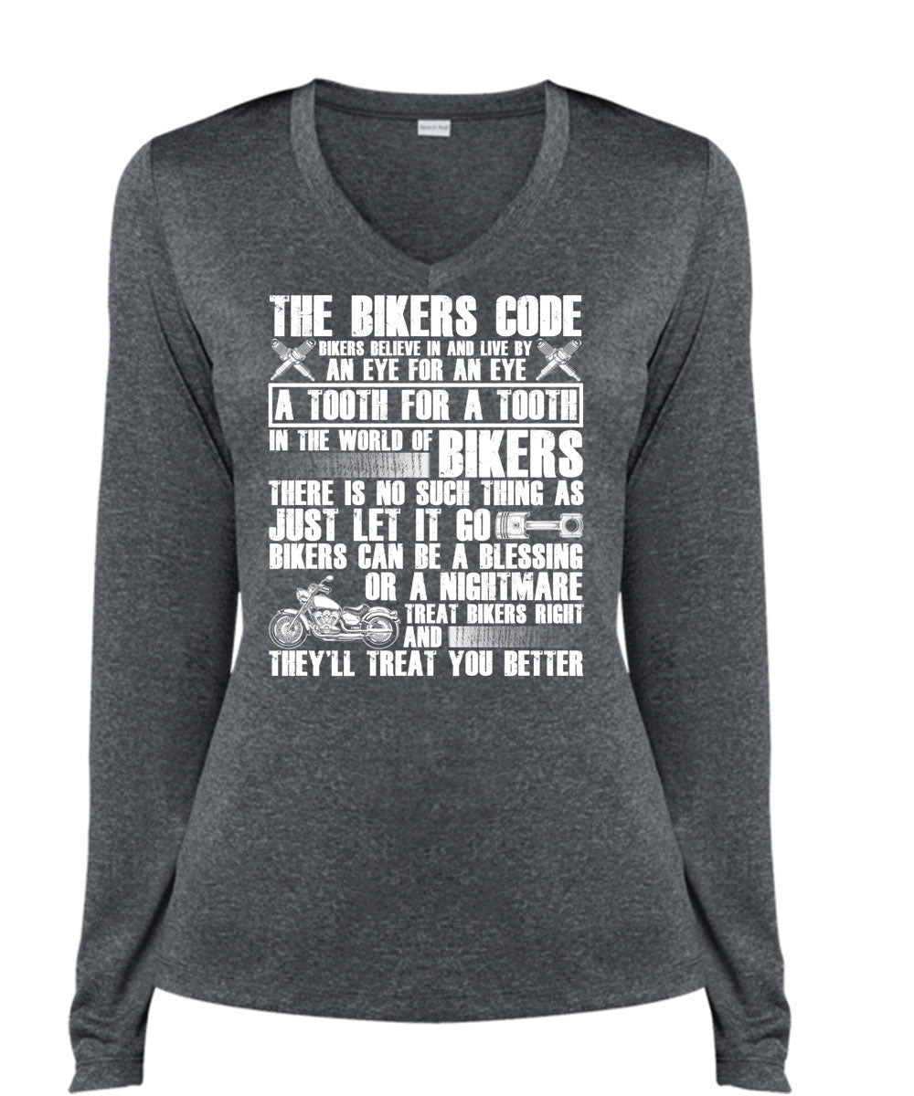 The Bikers Code T Shirt, World Of Biker T Shirt, Cool Shirt (Ladies LS Heather V-Neck)