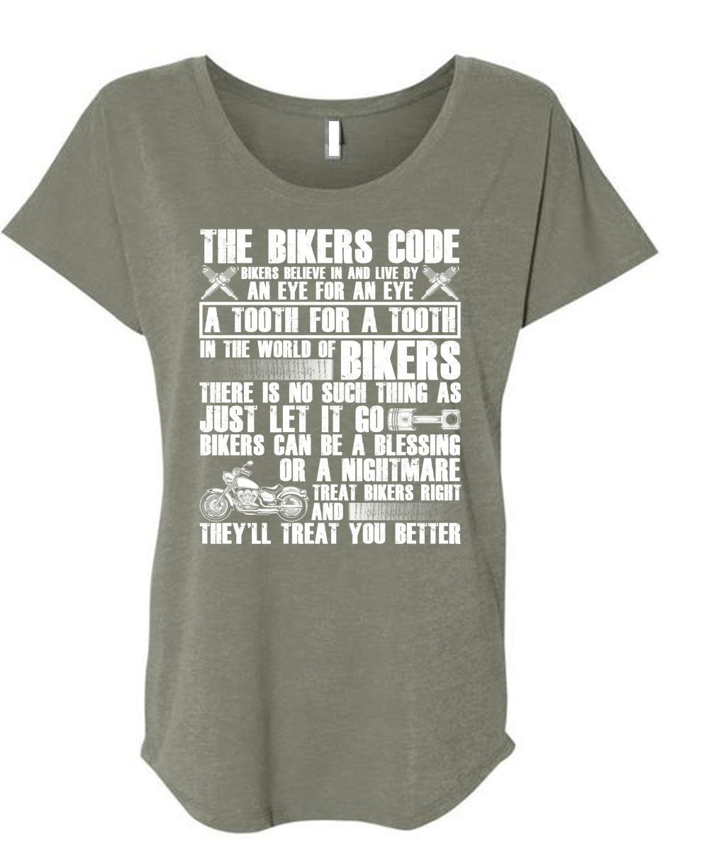 The Bikers Code T Shirt, World Of Biker T Shirt, Cool Shirt (Ladies' Triblend Dolman Sleeve)