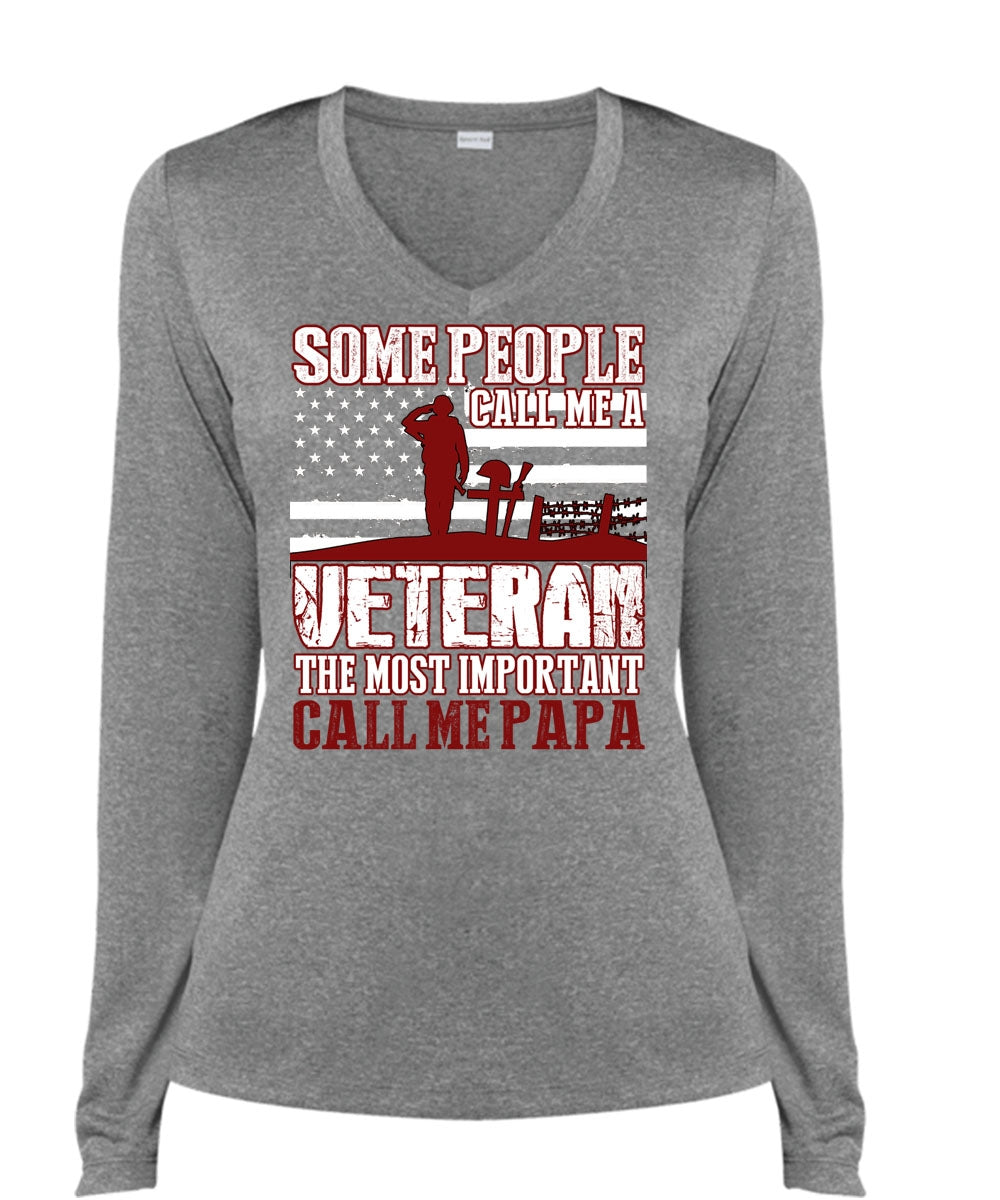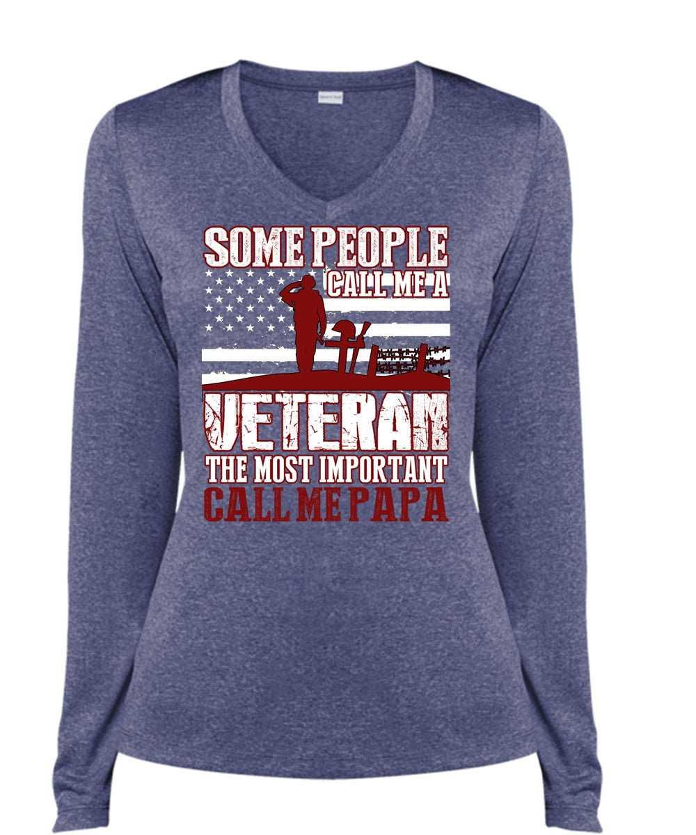 The Most Important Call Me Papa T Shirt, Call Me A Veteran T Shirt, Cool Shirt (Ladies LS Heather V-Neck)
