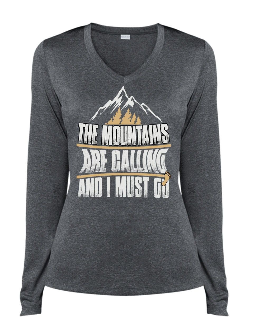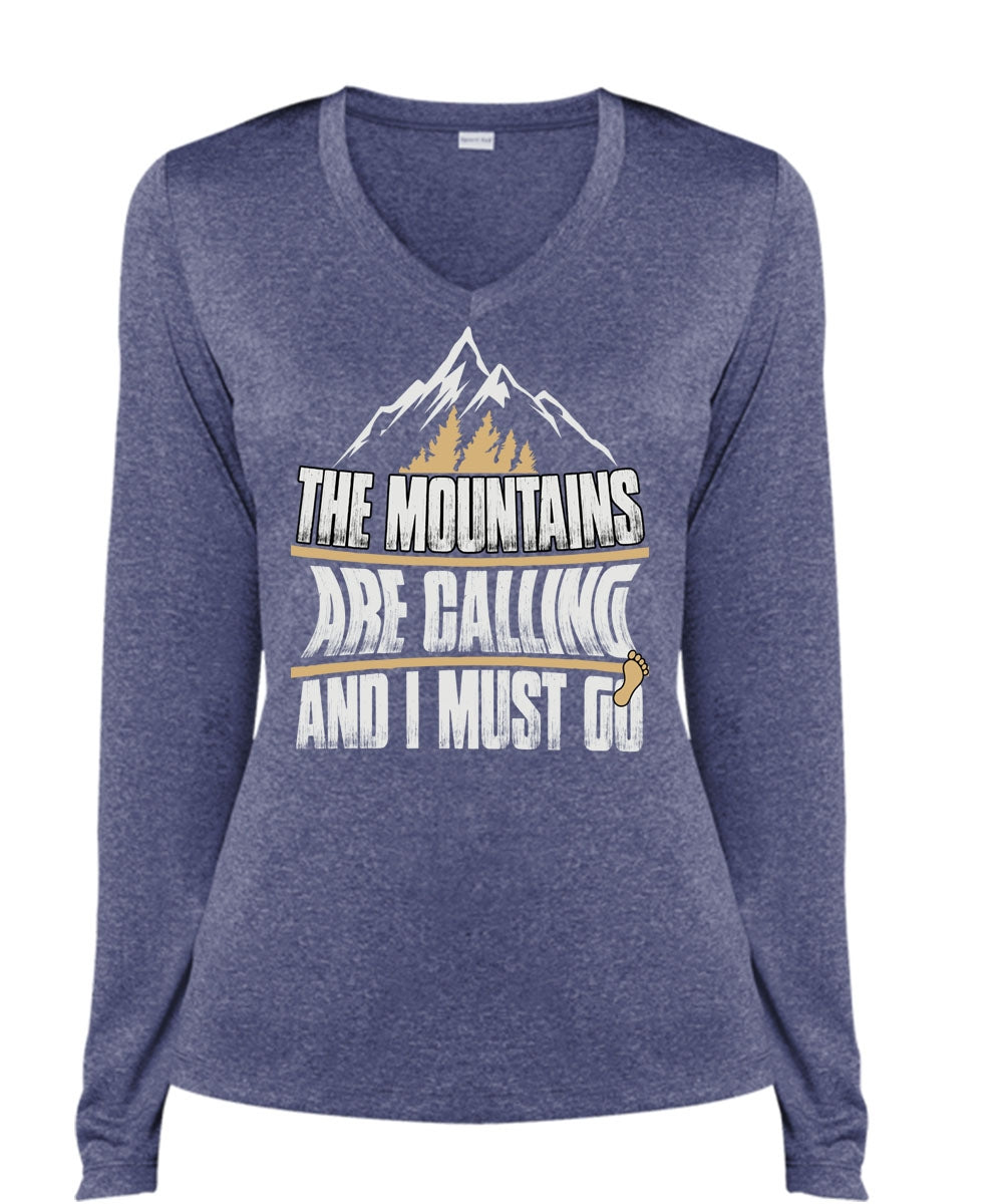 The Mountains Are Calling T Shirt, My Favorite T Shirt, Cool Shirt (Ladies LS Heather V-Neck)