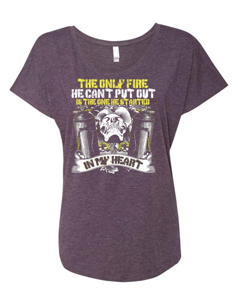 The Only Fire T Shirt, He Can't Put Out T Shirt, Cool Shirt (Ladies' Triblend Dolman Sleeve)