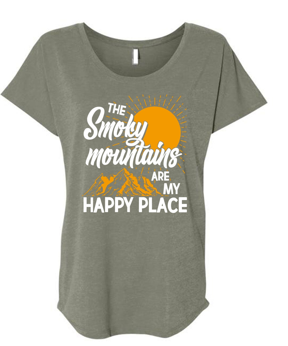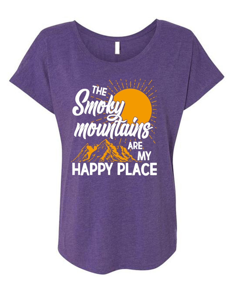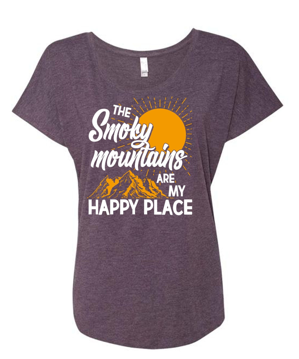 The Smoky Mountains Are My Happy Place T Shirt, My Favorite T Shirt, Cool Shirt (Ladies' Triblend Dolman Sleeve)