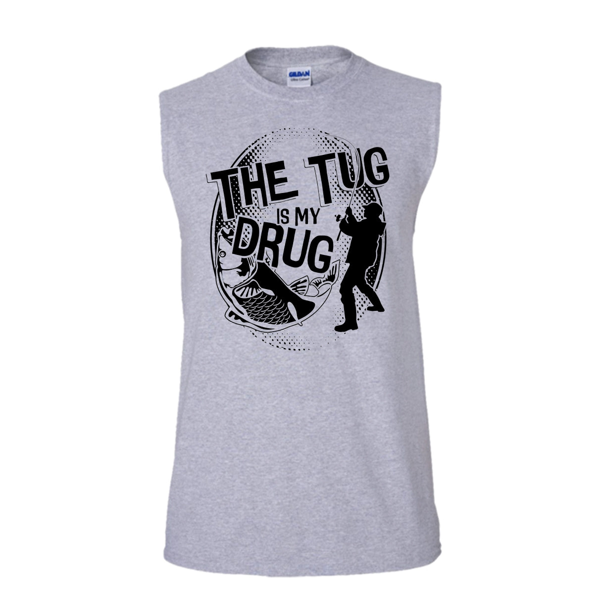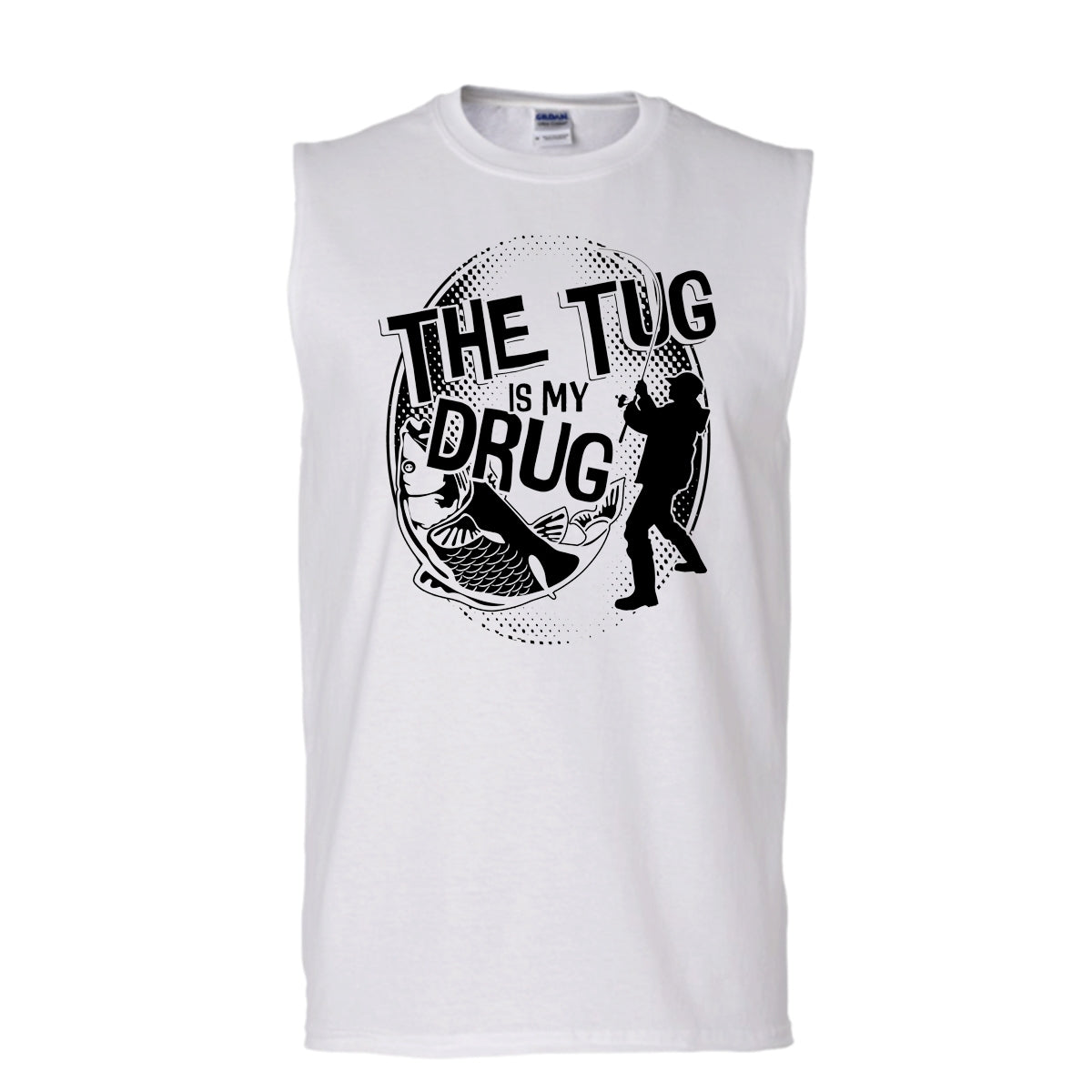 The Tug Is My Drug T Shirt, Coolest Fishing Tank Top (Men's Cotton Sleeveless)