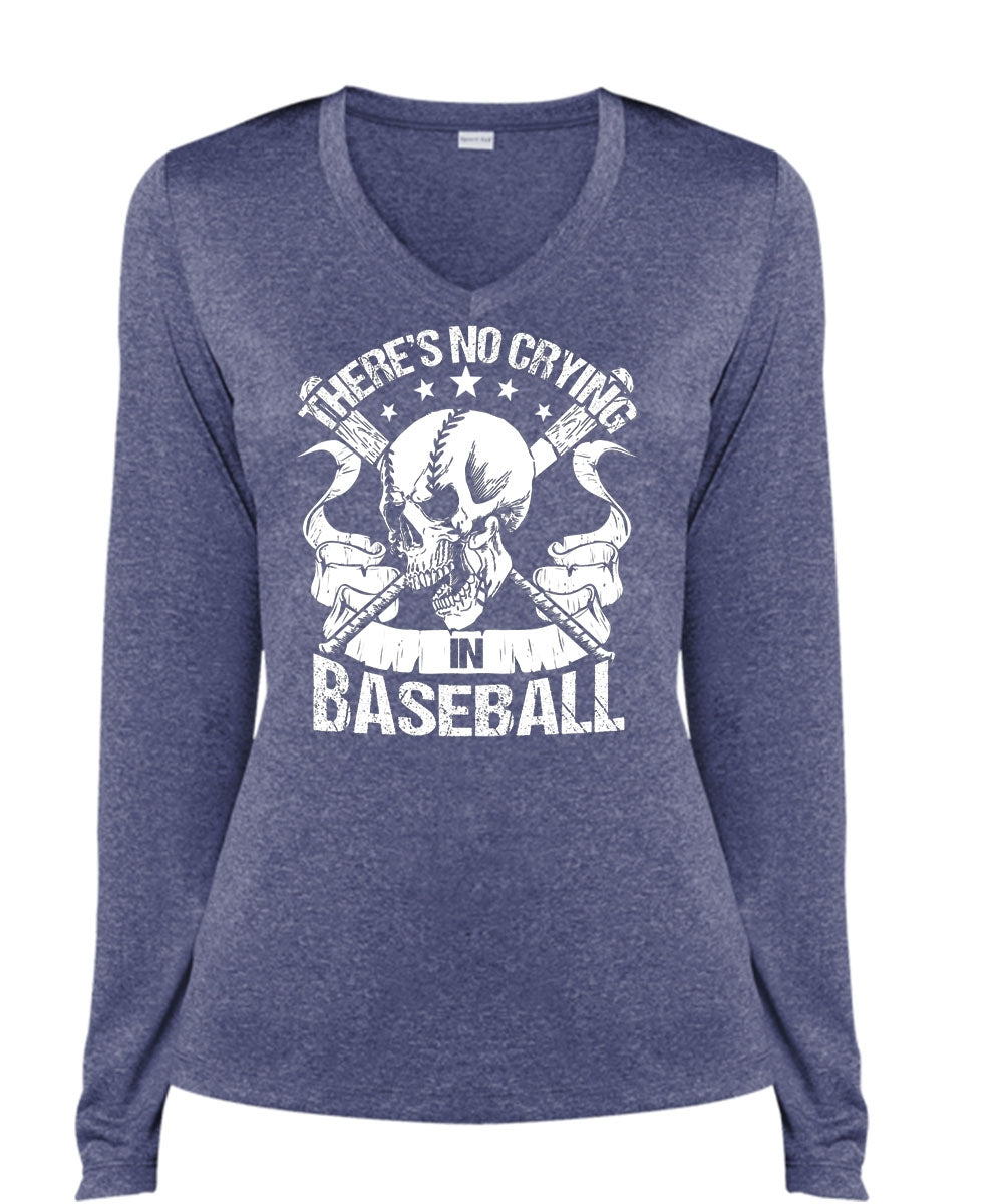There's No Crying In Baseball T Shirt, Being A Baseball Coach T Shirt, Cool Shirt (Ladies LS Heather V-Neck)