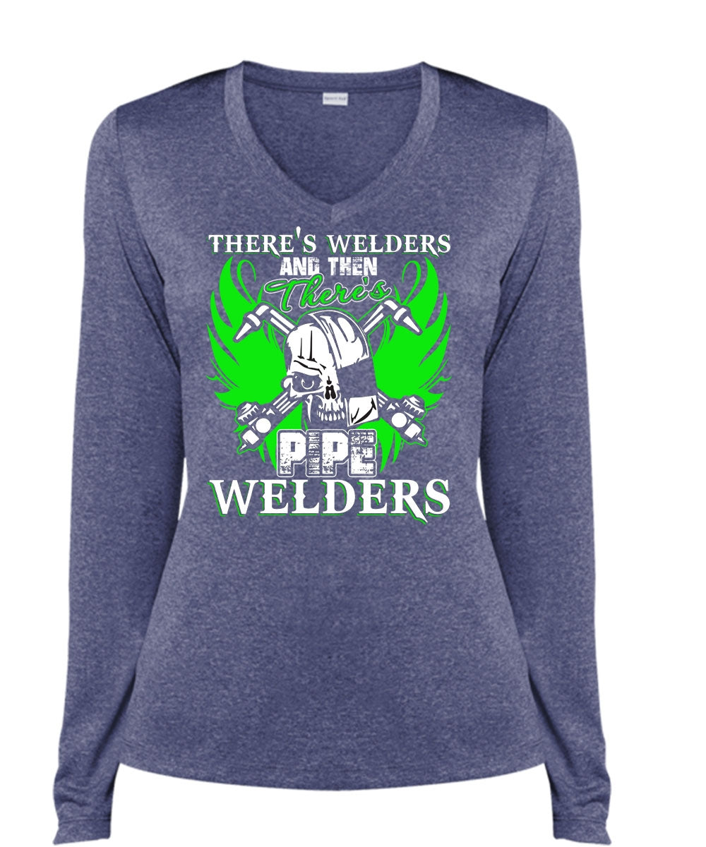 There's Pipe Welders T Shirt, Being A Welder T Shirt, Cool Shirt (Ladies LS Heather V-Neck)