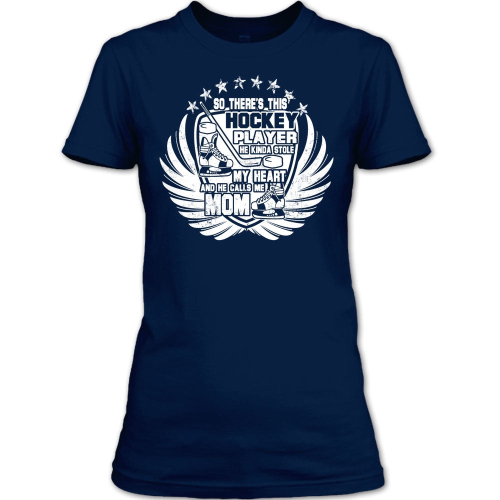 There's This Hockey Player T Shirt, He Calls Me Mom T Shirt