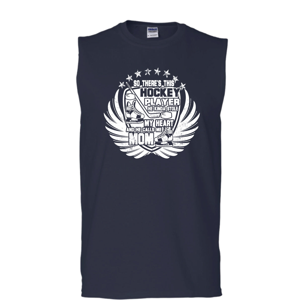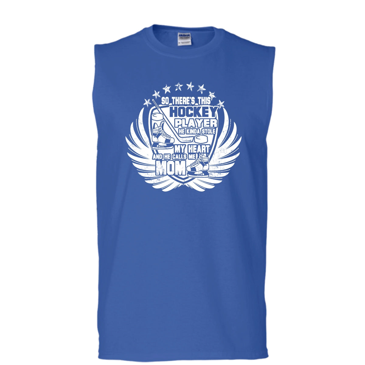 There's This Hockey Player T Shirt, He Calls Me Mom Tank Top (Men's Cotton Sleeveless)