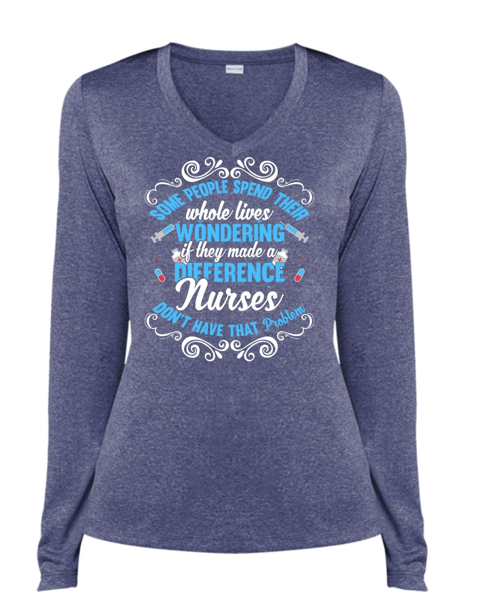 They Made A Difference Nurses T Shirt, Being A Nurse T Shirt, Cool Shirt (Ladies LS Heather V-Neck)