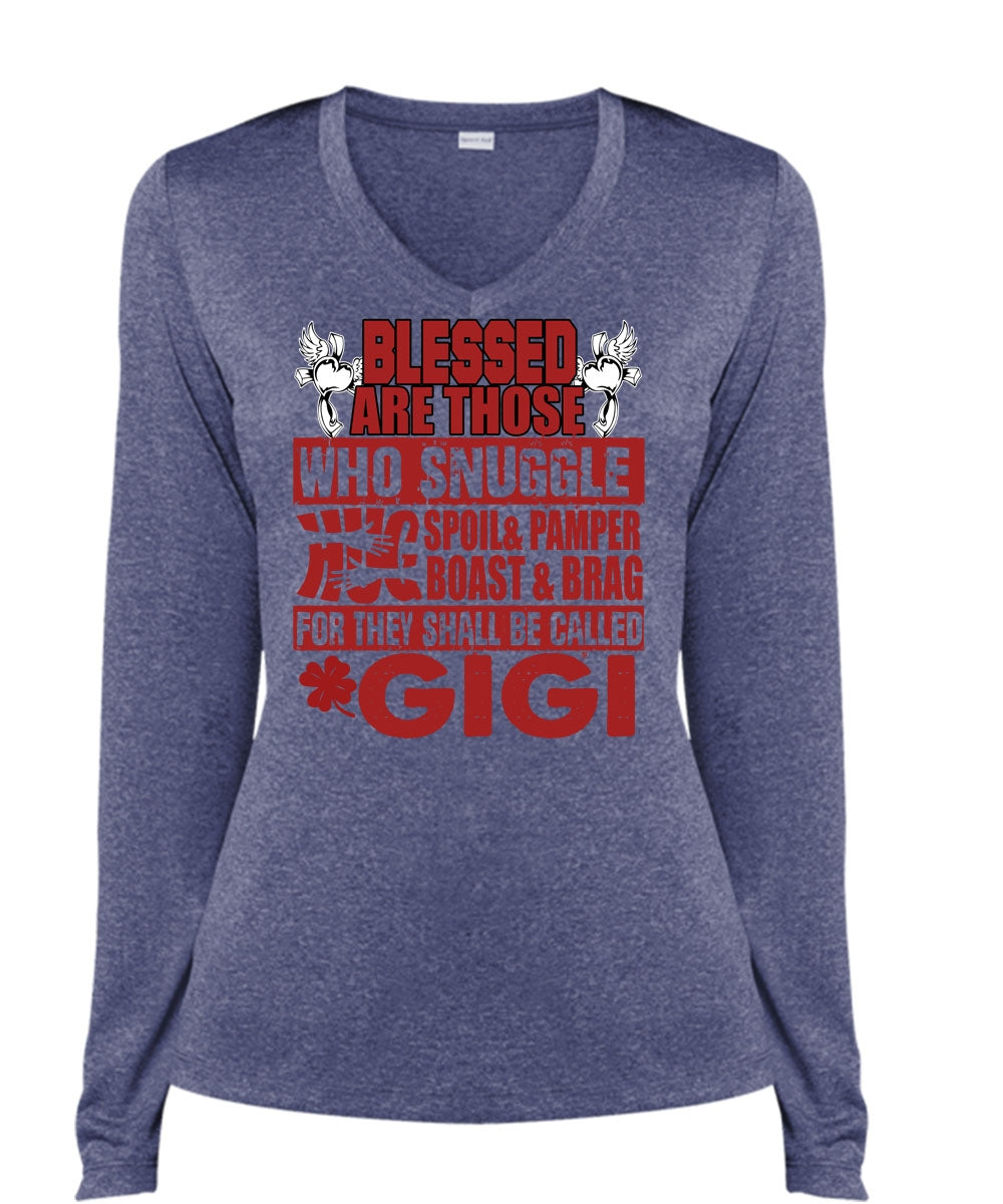 They Shall Be Called Gigi T Shirt, Being A Nana T Shirt, Cool Shirt (Ladies LS Heather V-Neck)