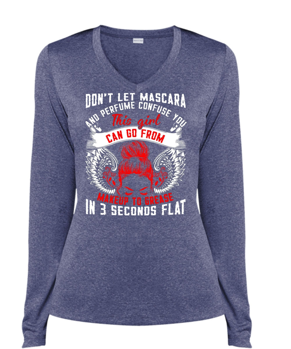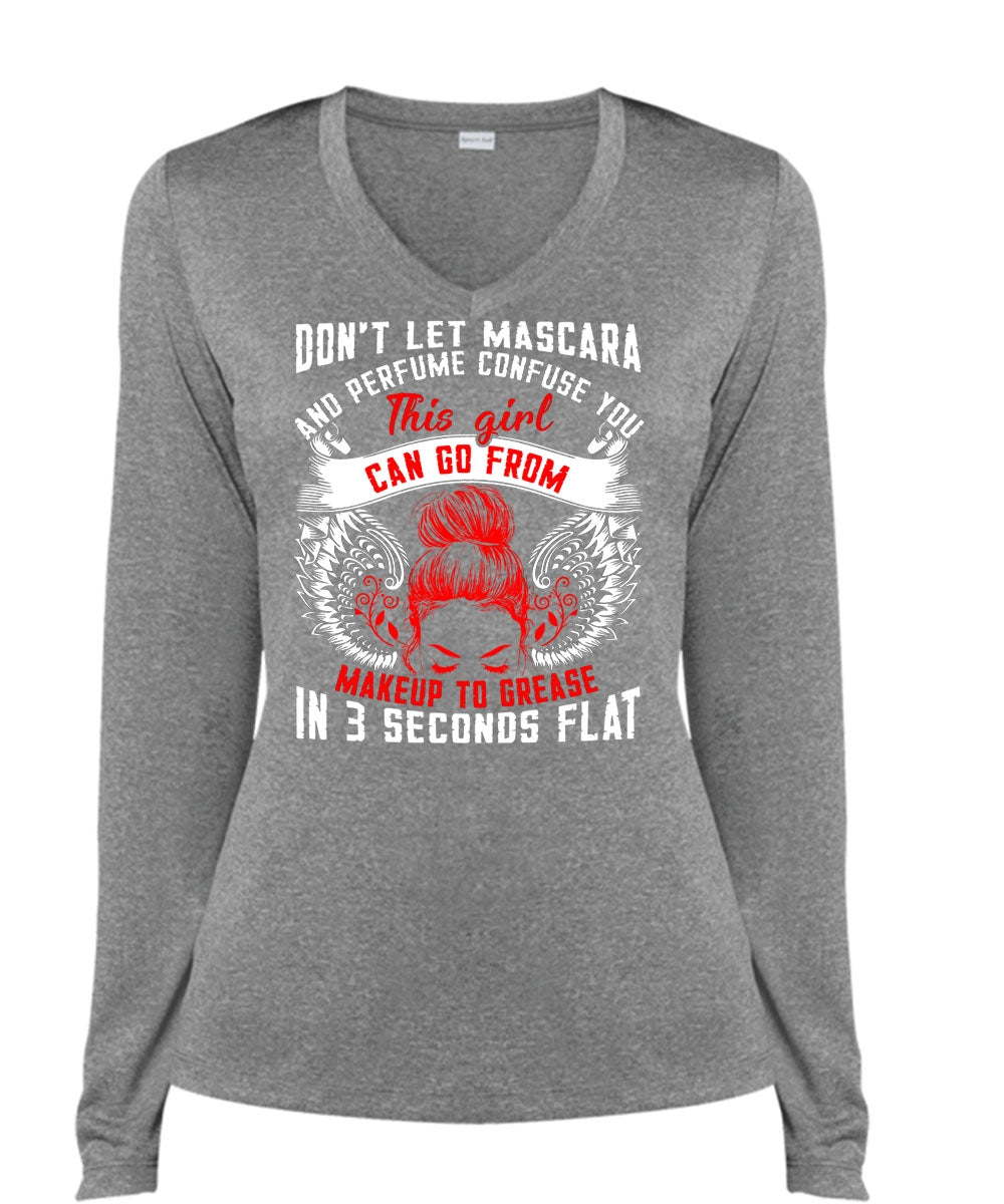 This Girl Can Go From Makeup To Grease T Shirt, Being A Mom T Shirt, Cool Shirt (Ladies LS Heather V-Neck)
