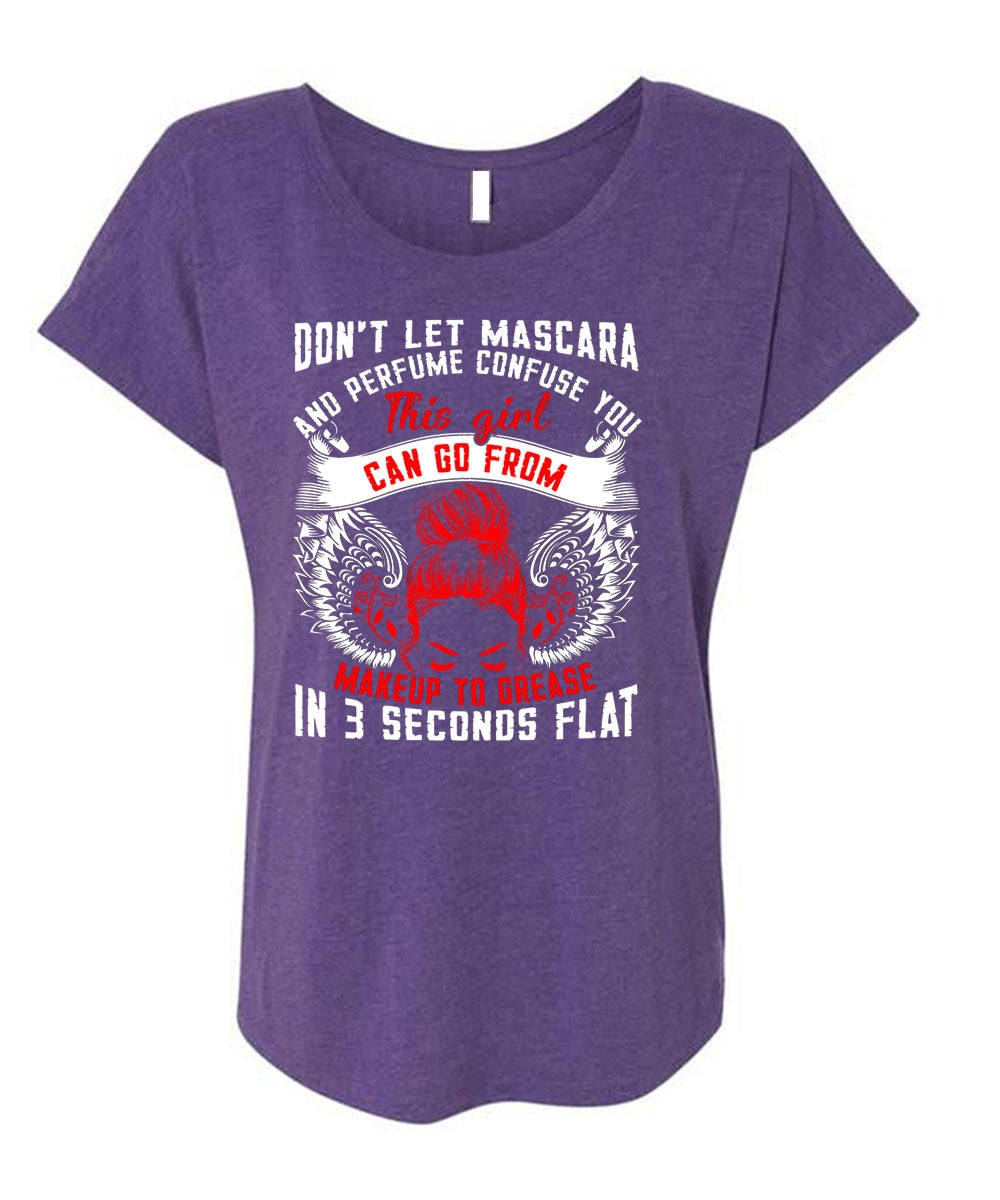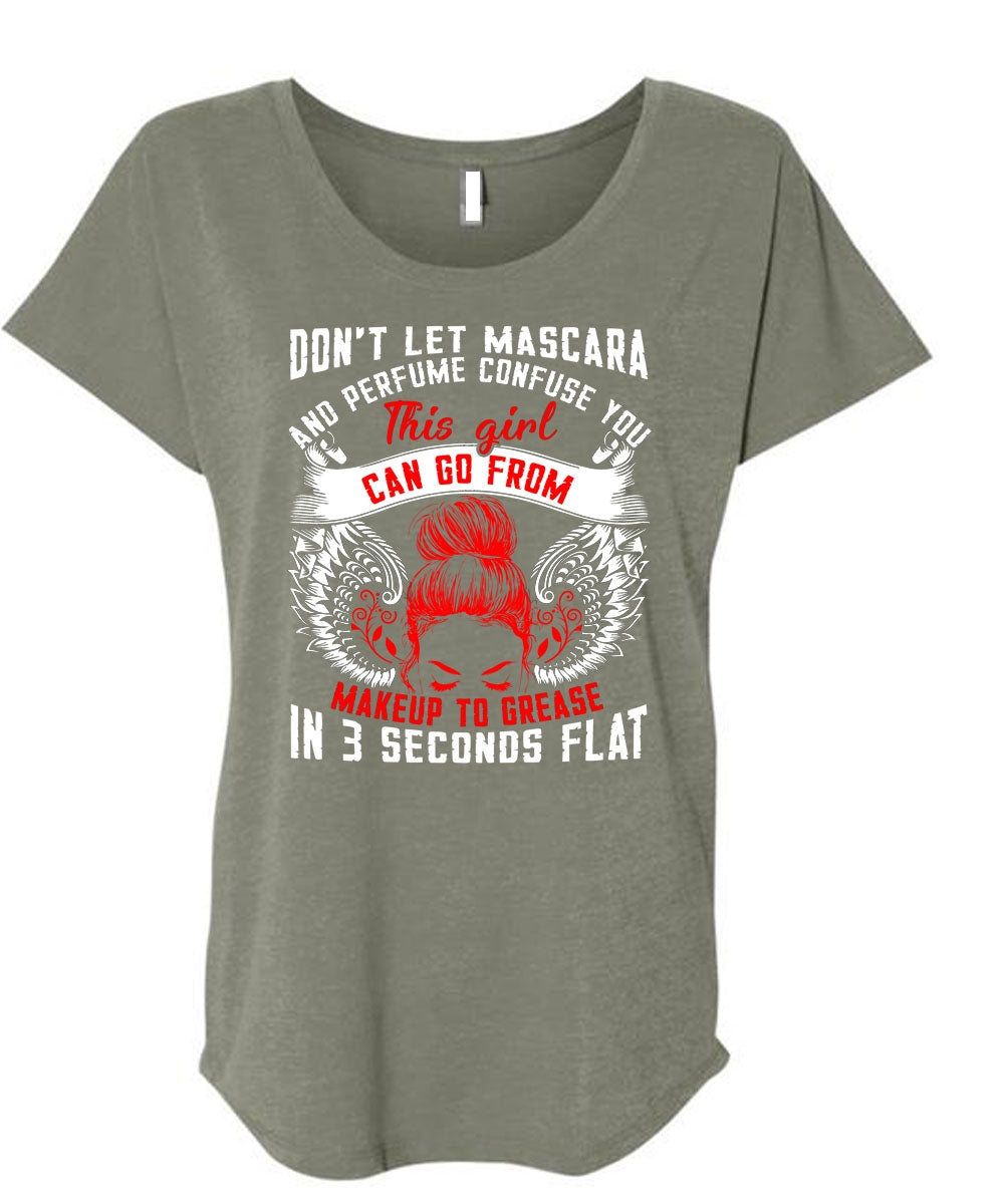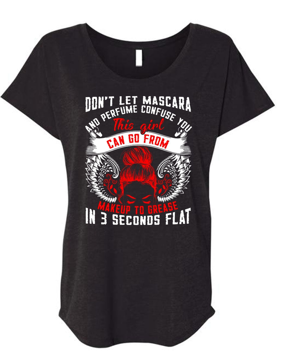 This Girl Can Go From Makeup To Grease T Shirt, Being A Mom T Shirt, Cool Shirt (Ladies' Triblend Dolman Sleeve)
