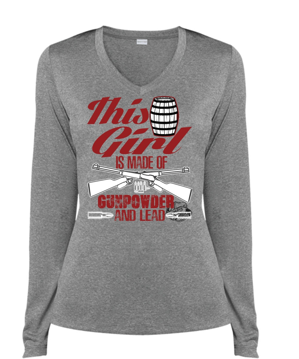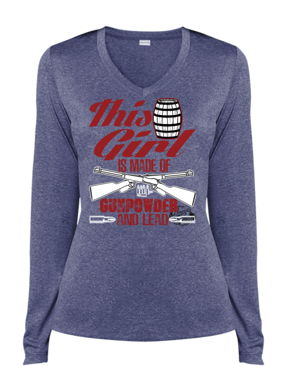This Girl Is Made Of Gunpowder T Shirt, Being A Veteran T Shirt, Cool Shirt (Ladies LS Heather V-Neck)