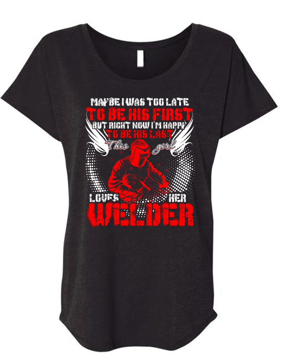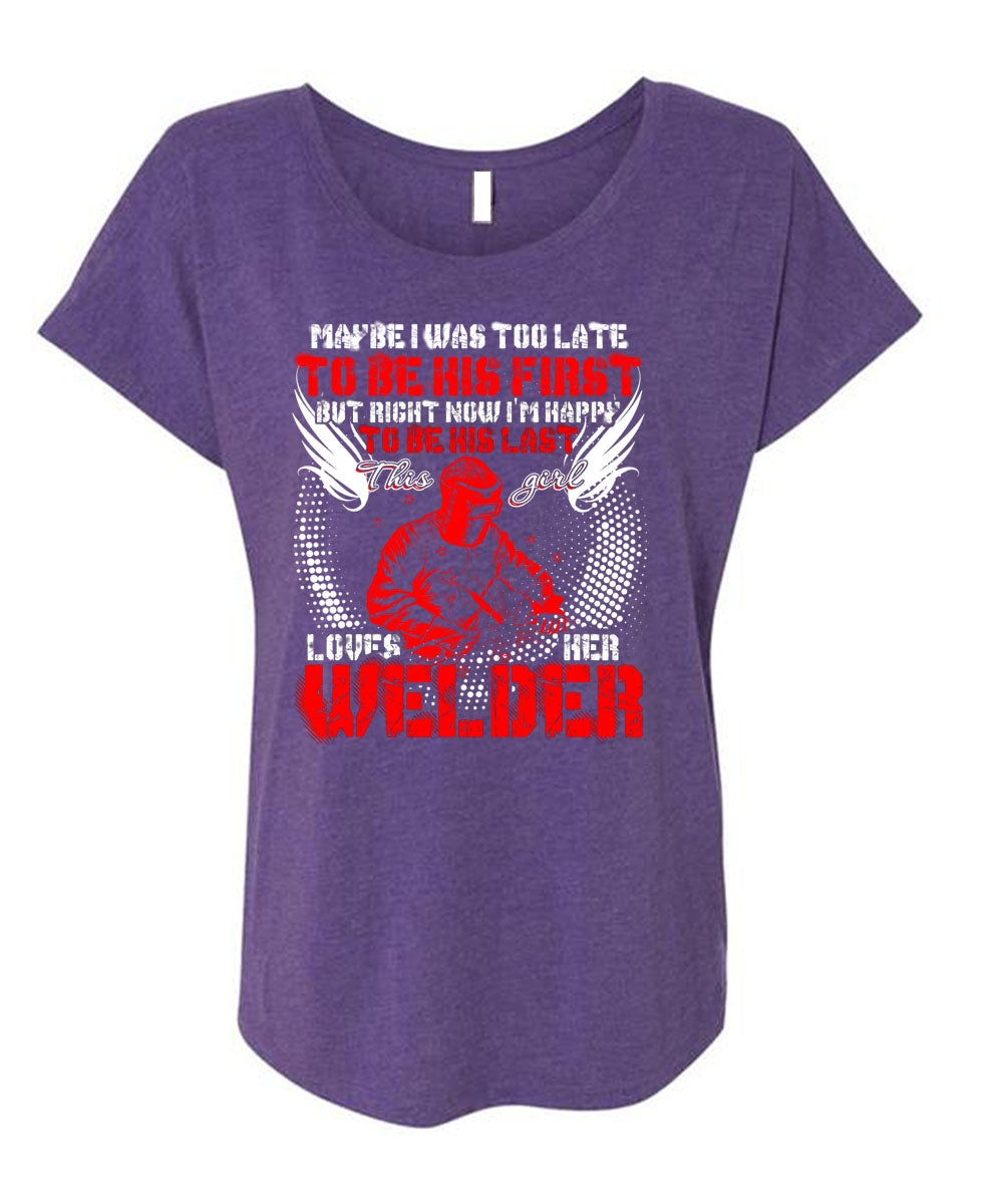 This Girl Loves Her Welder T Shirt, I'm Happy T Shirt, Cool Shirt (Ladies' Triblend Dolman Sleeve)