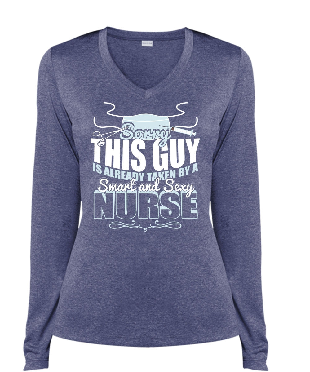 This Guy Is Already Taken By A Smart Nurse T Shirt, Being A Nurse T Shirt, Cool Shirt (Ladies LS Heather V-Neck)