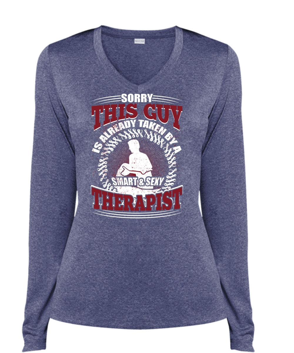 This Guy Is Already Taken By A Therapist T Shirt, Being A Therapist T Shirt, Cool Shirt (Ladies LS Heather V-Neck)
