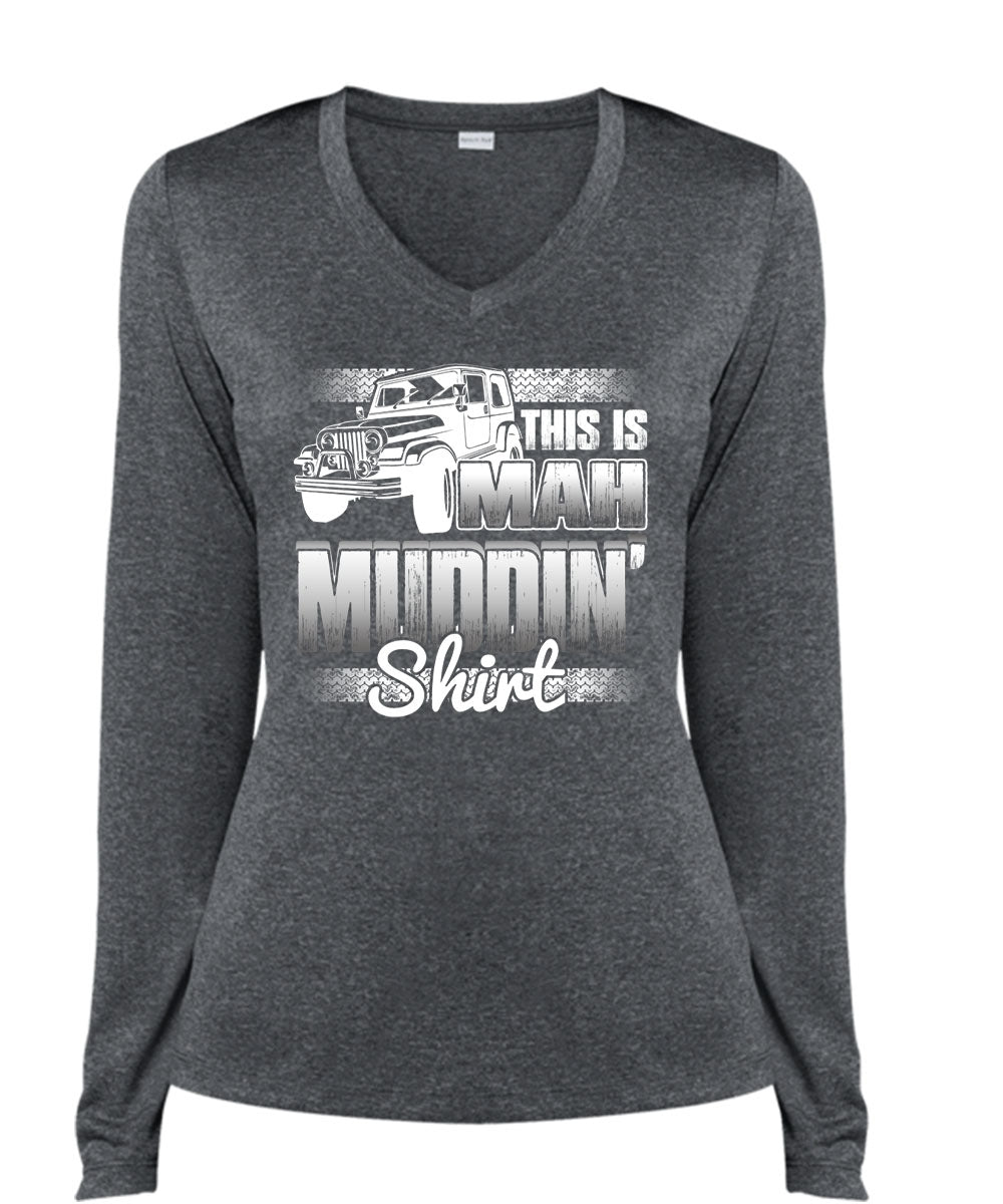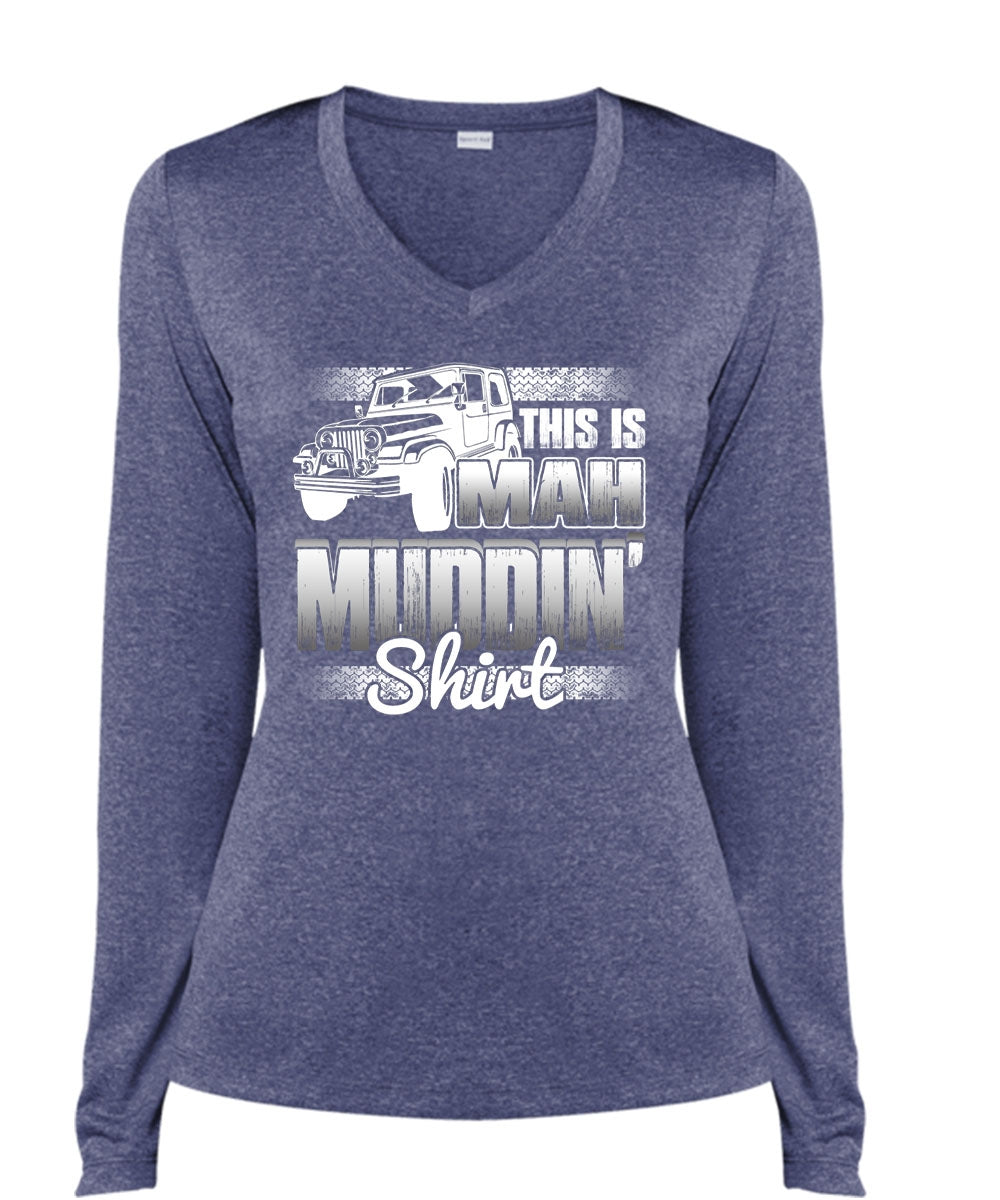 This Is Man Mudding T Shirt, Being A Jeep Driver T Shirt, Cool Shirt (Ladies LS Heather V-Neck)