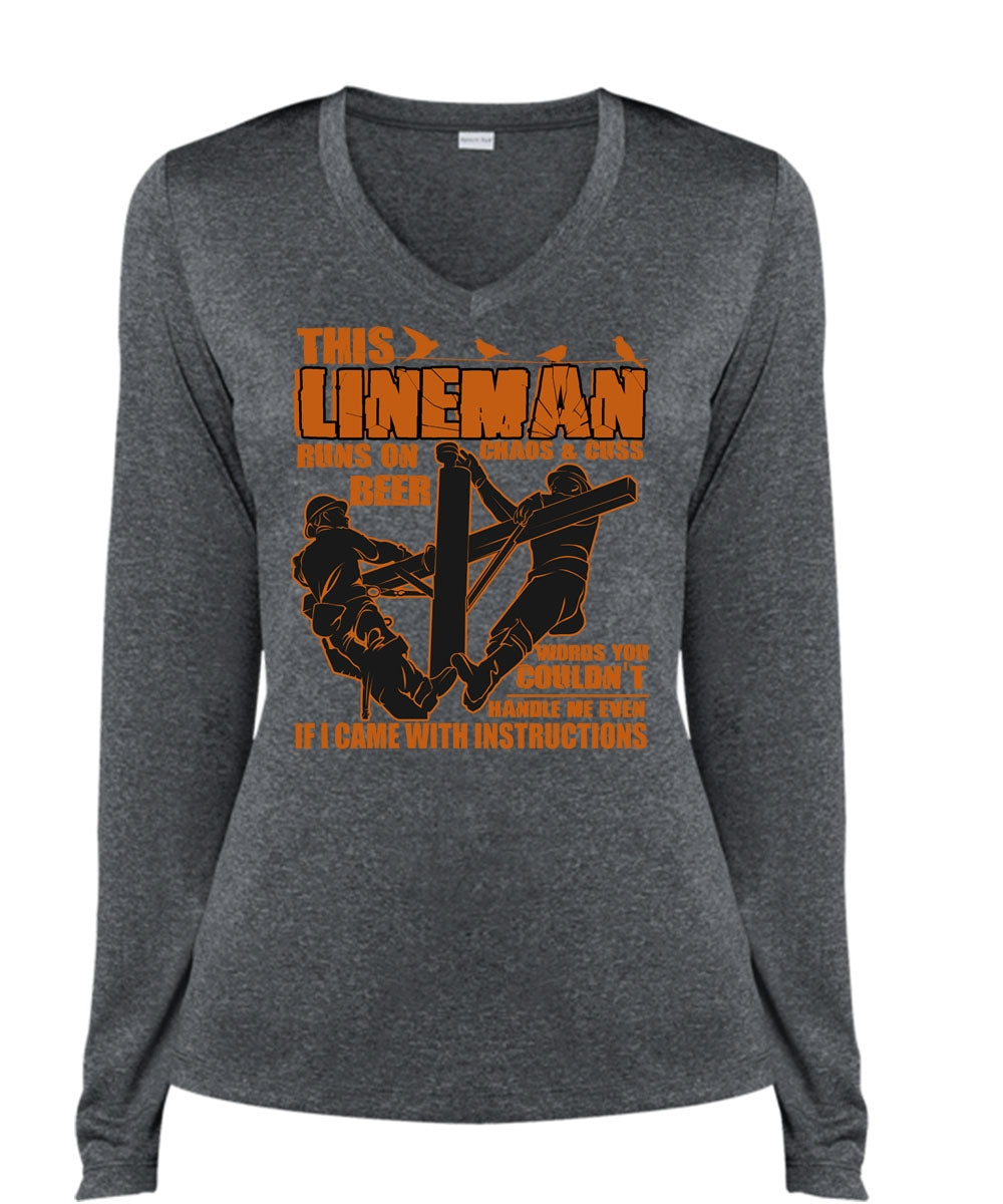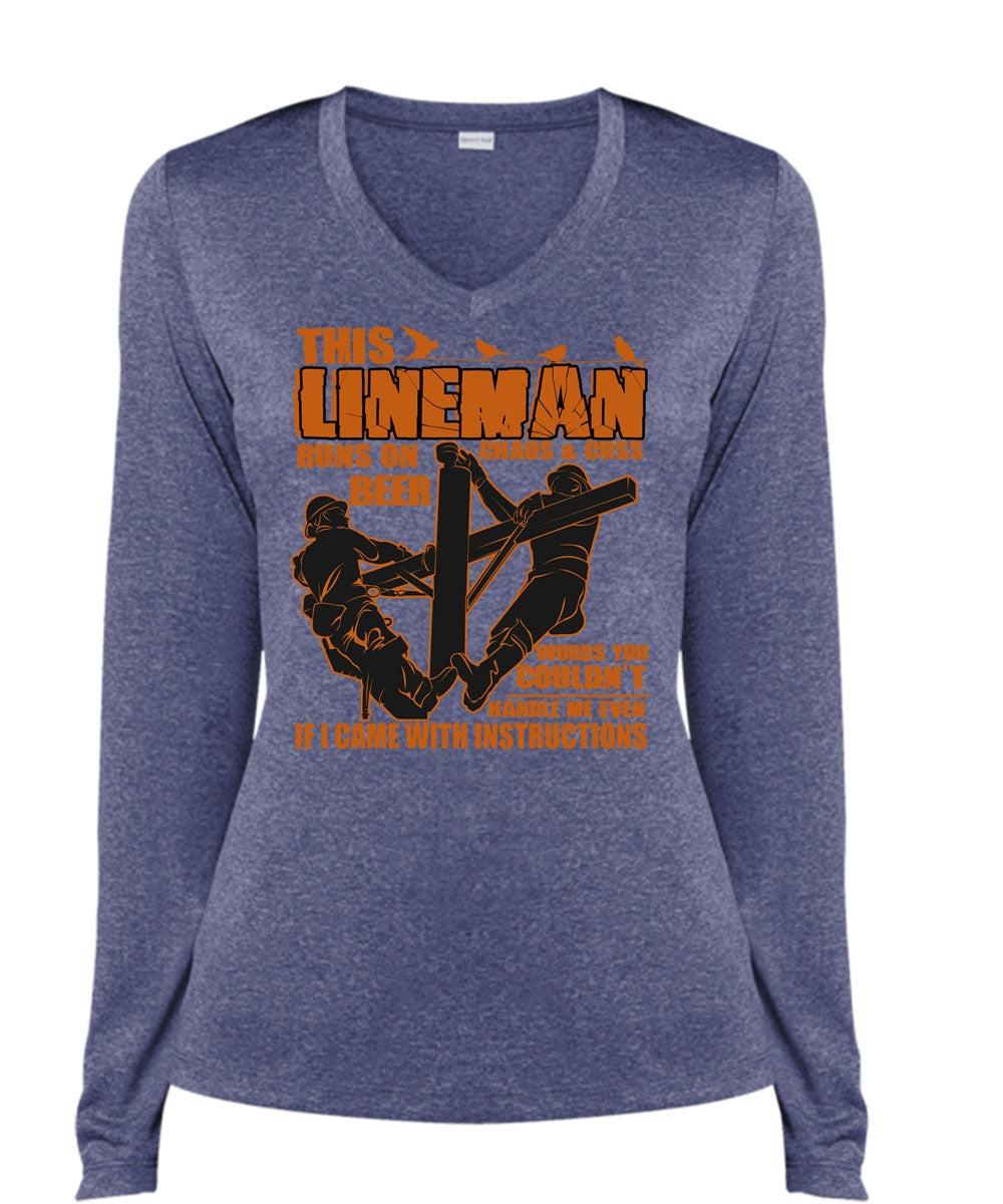 This Lineman Runs On Beer T Shirt, I Love Lineman T Shirt, Cool Shirt (Ladies LS Heather V-Neck)