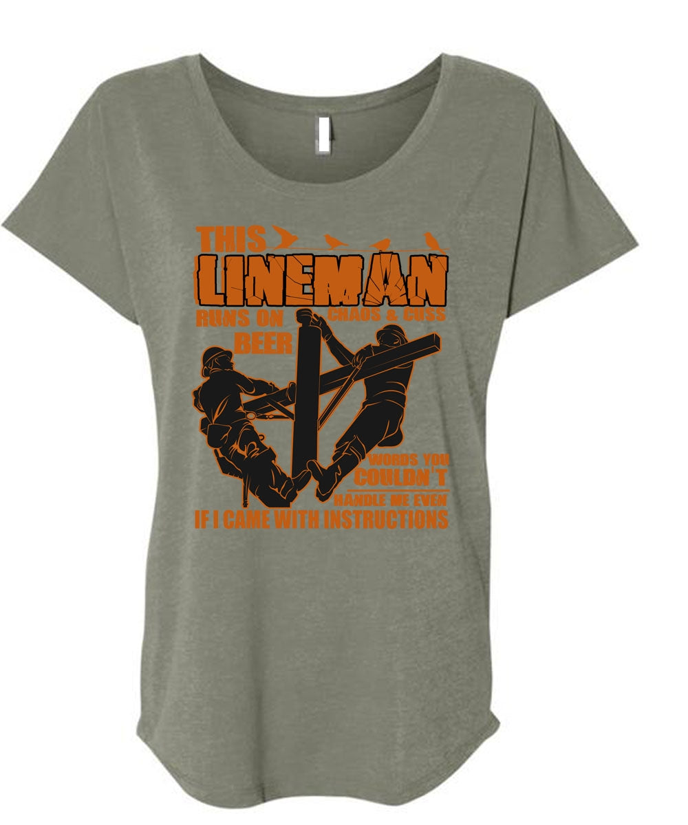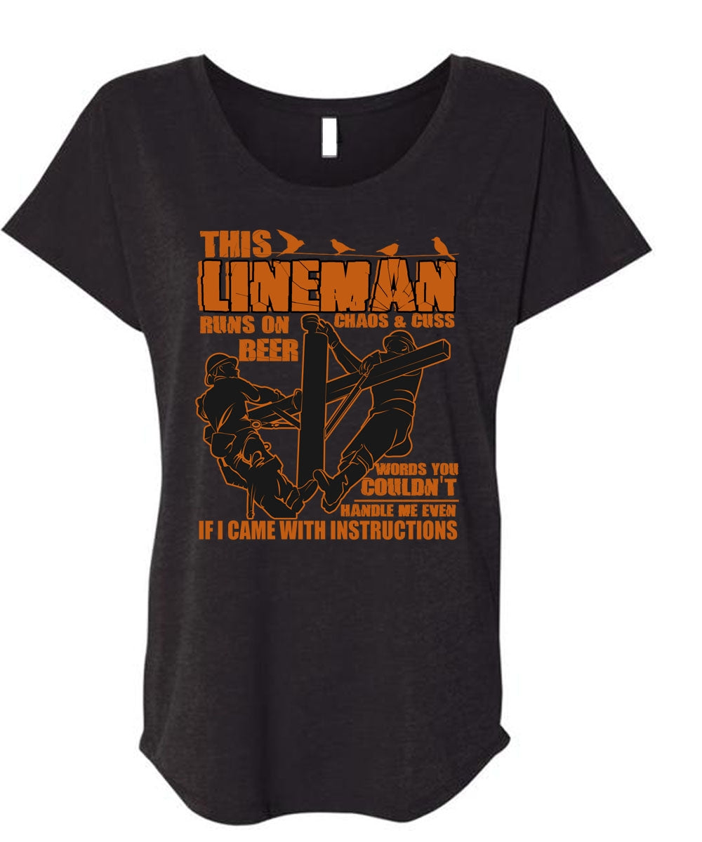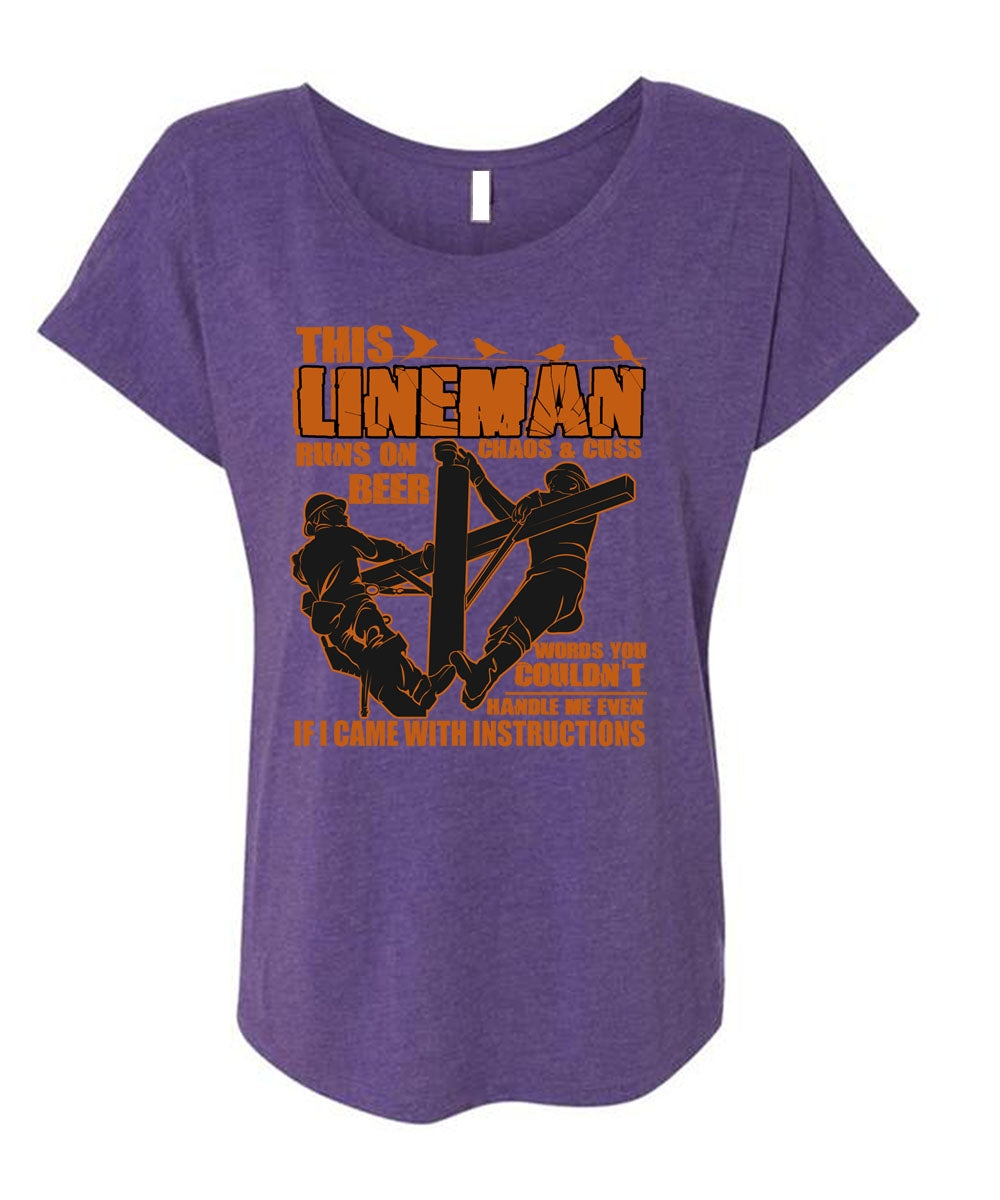 This Lineman Runs On Beer T Shirt, I Love Lineman T Shirt, Cool Shirt (Ladies' Triblend Dolman Sleeve)
