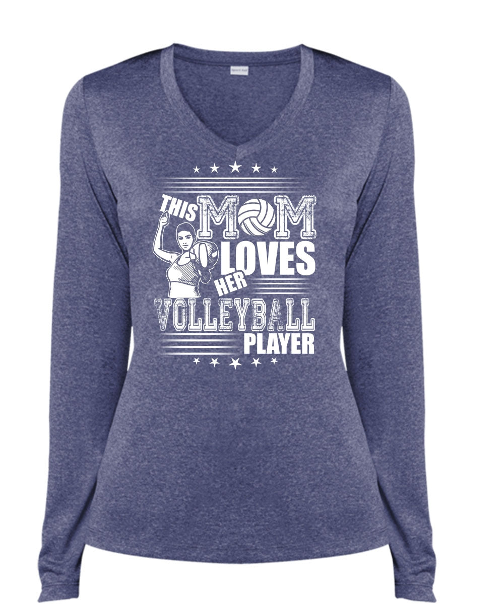 This Mom Loves Her Volleyball Player T Shirt, Being A Volleyball Coach T Shirt, Cool Shirt (Ladies LS Heather V-Neck)