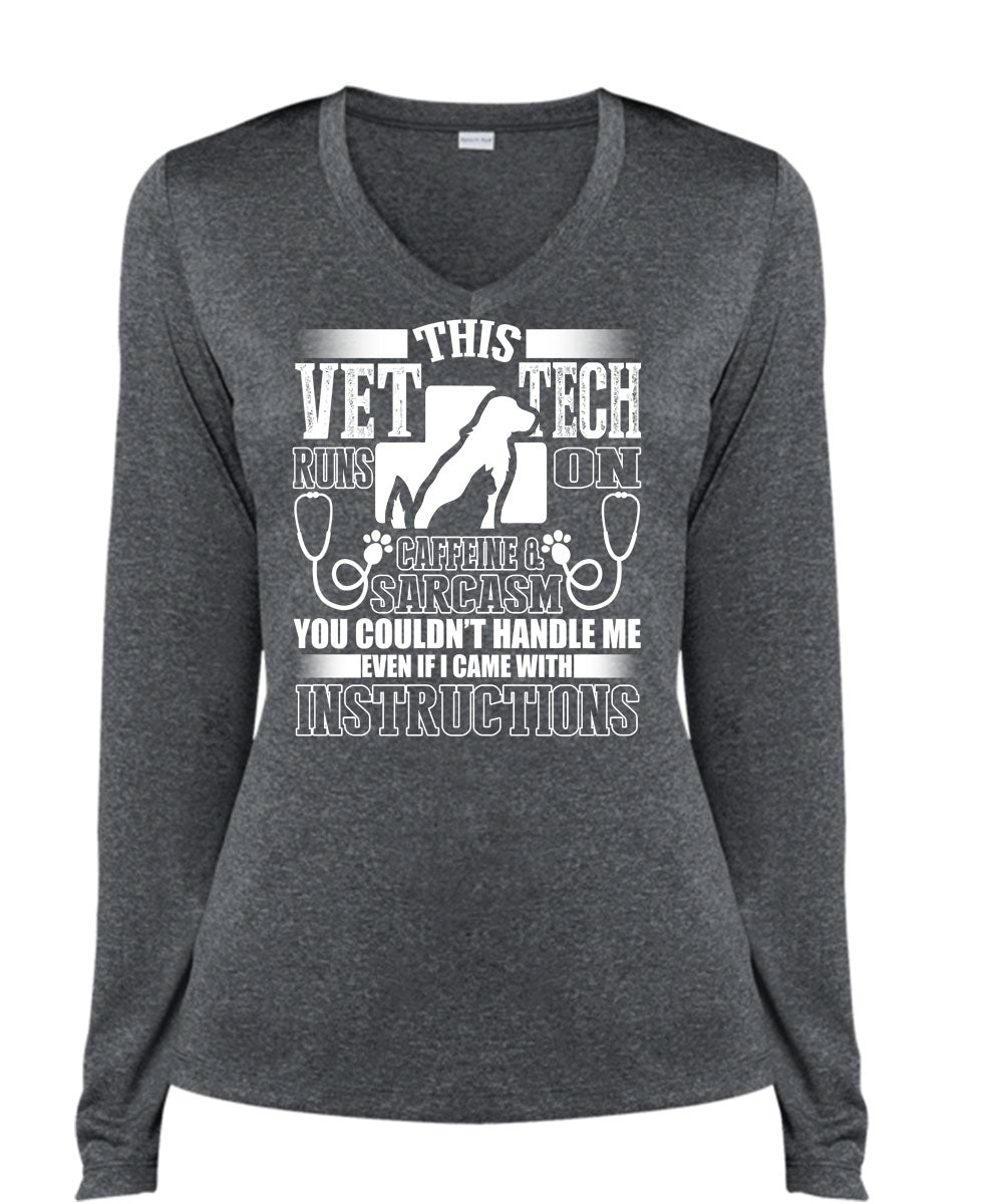 This Vet Tech Runs On Caffeine T Shirt, I Became With Instructions T Shirt, Cool Shirt (Ladies LS Heather V-Neck)