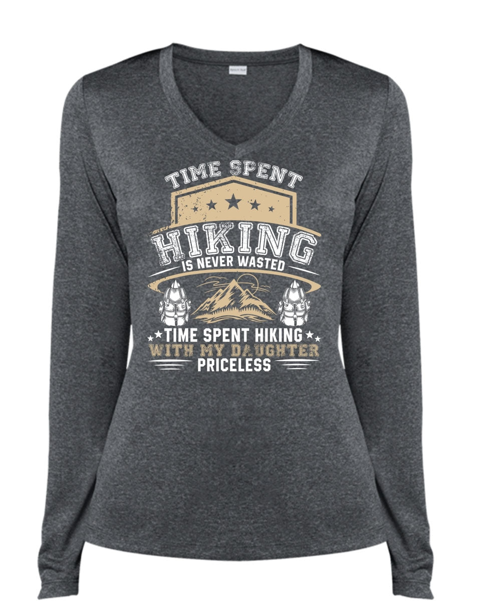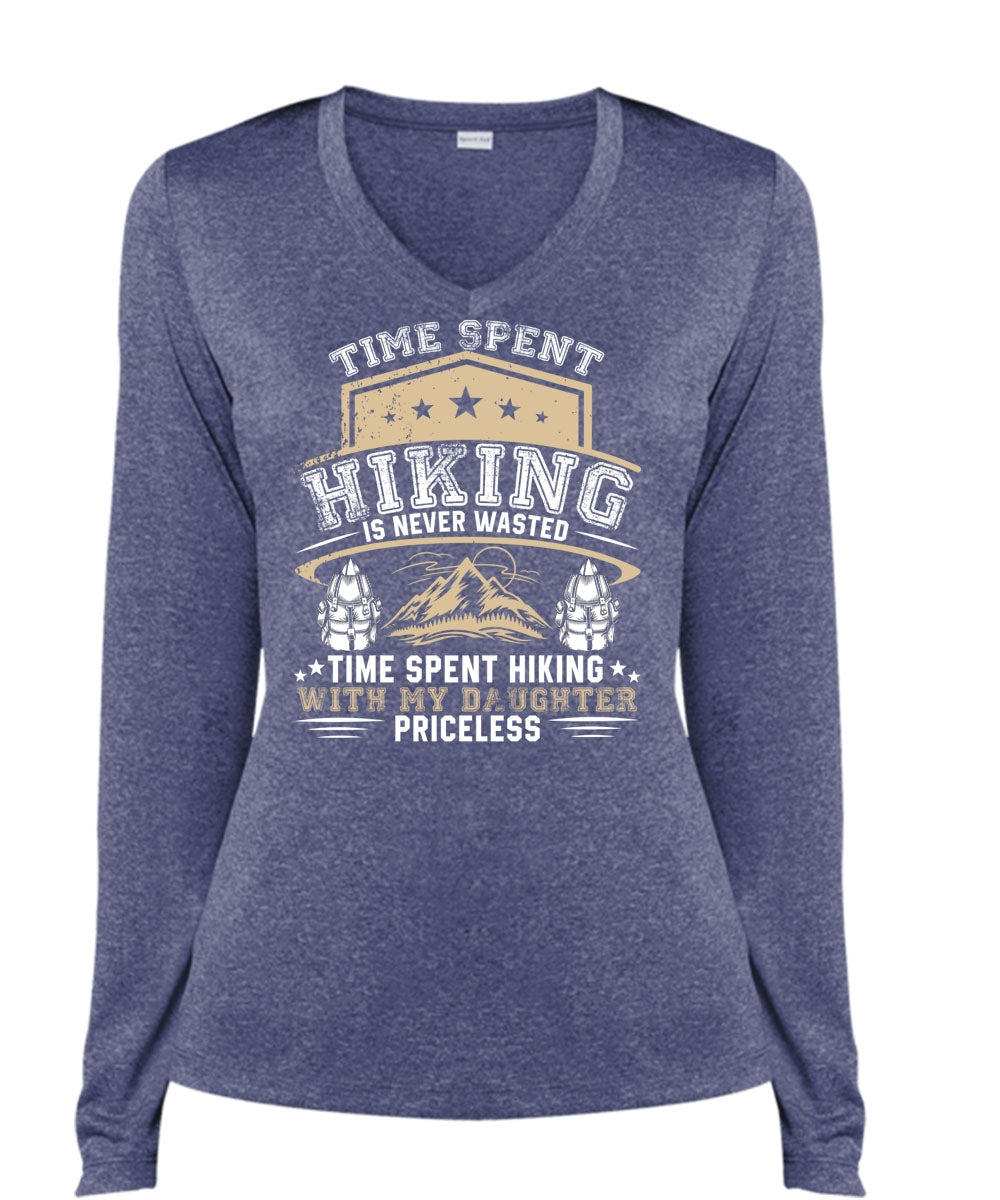 Time Spent Hiking Is Never Wasted T Shirt, Being A Hiker T Shirt, Cool Shirt (Ladies LS Heather V-Neck)