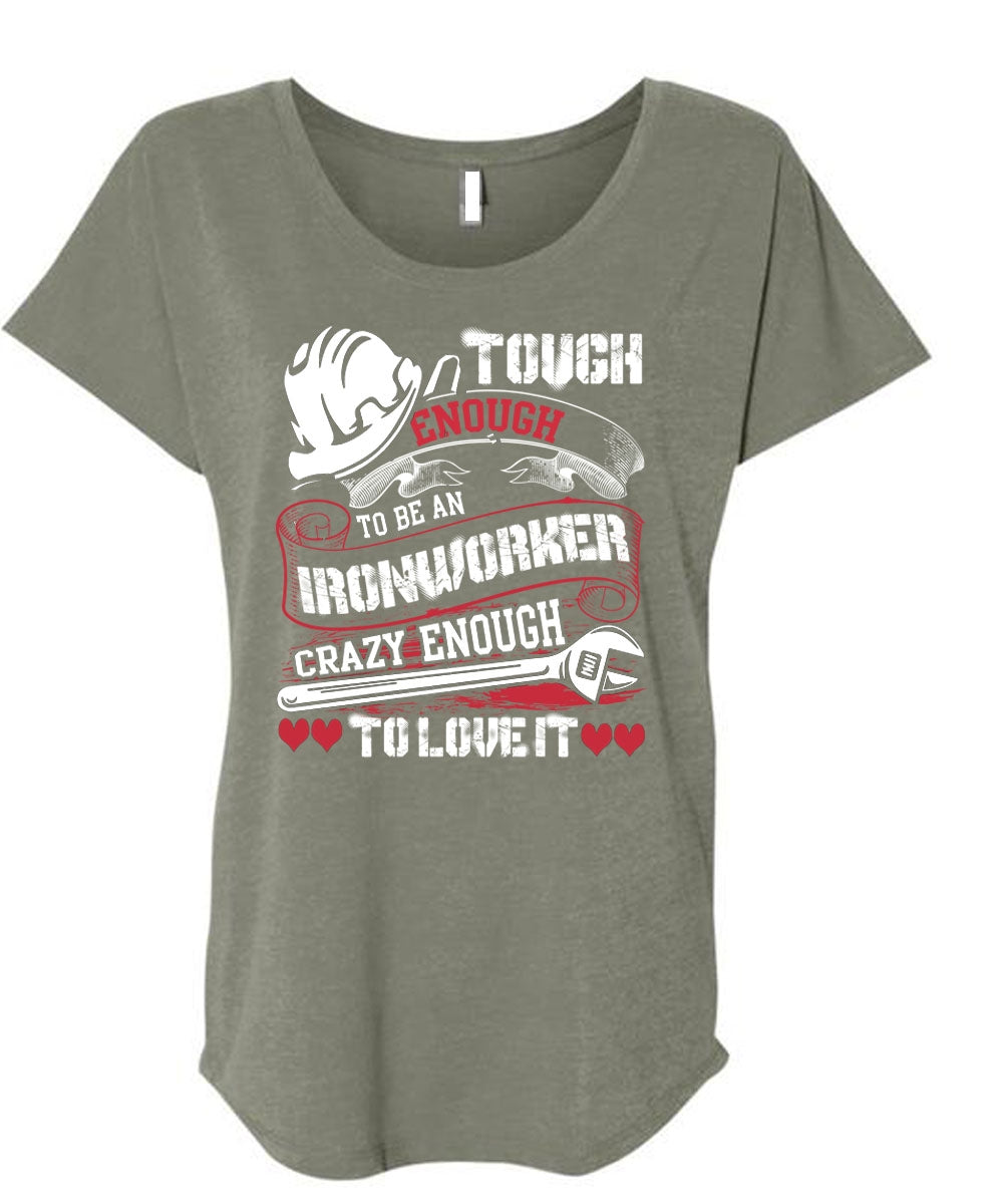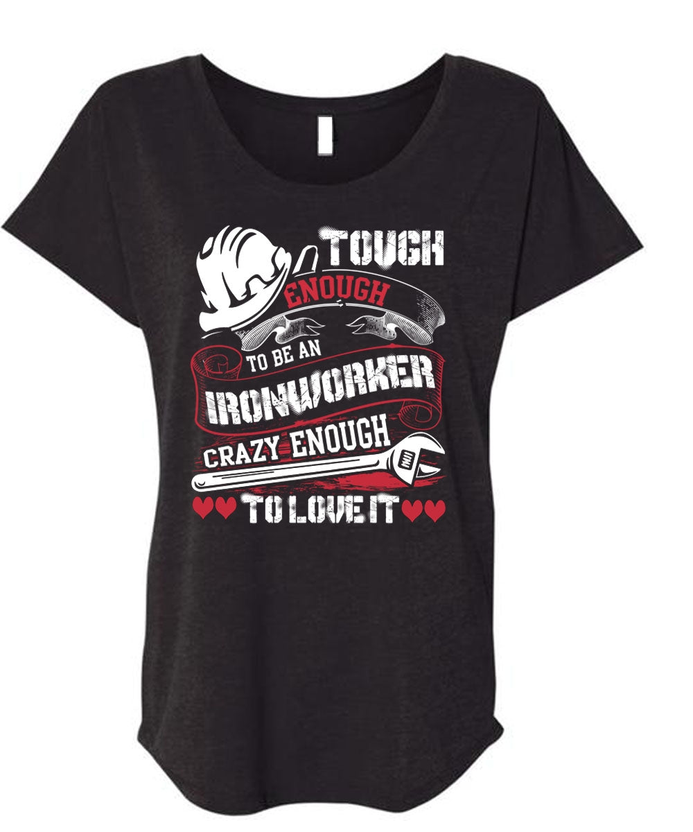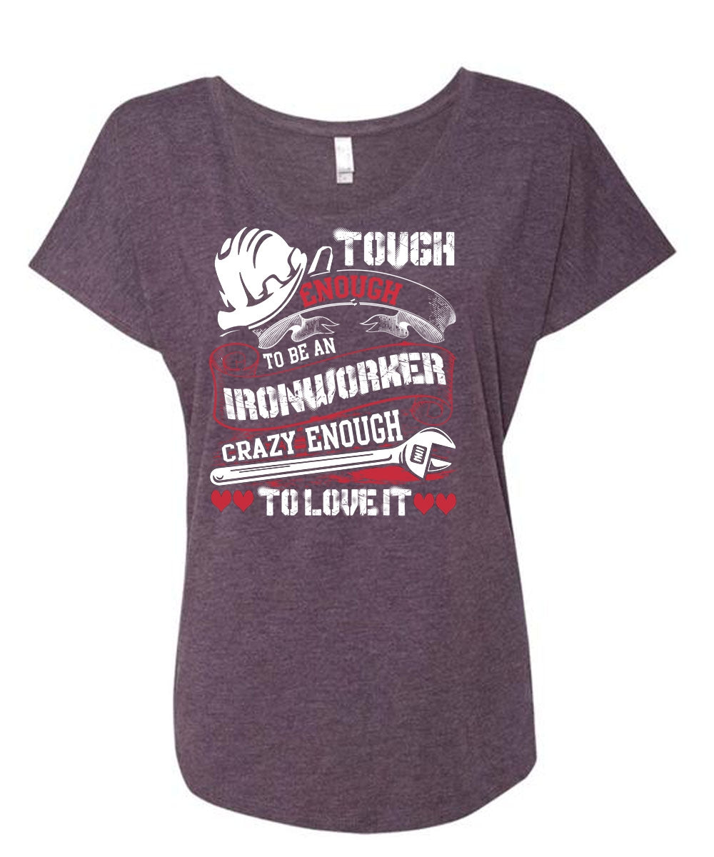 To Be An Ironworker T Shirt, Crazy Enough To Love It T Shirt, Cool Shirt (Ladies' Triblend Dolman Sleeve)