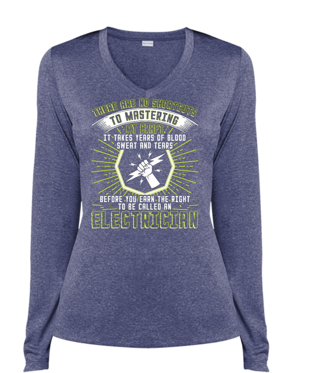 To Be Called An Electrician T Shirt, Sweat And Tears T Shirt, Cool Shirt (Ladies LS Heather V-Neck)