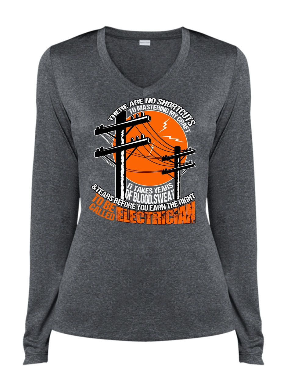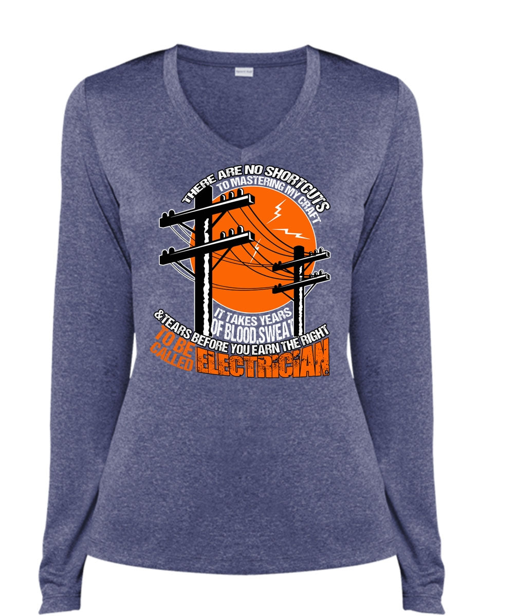 To Be Called Electrician T Shirt, Blood Sweat And Tears T Shirt, Cool Shirt (Ladies LS Heather V-Neck)
