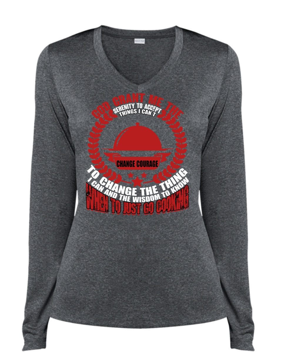 To Just Go Cooking T Shirt, Being A Chef T Shirt, Cool Shirt (Ladies LS Heather V-Neck)