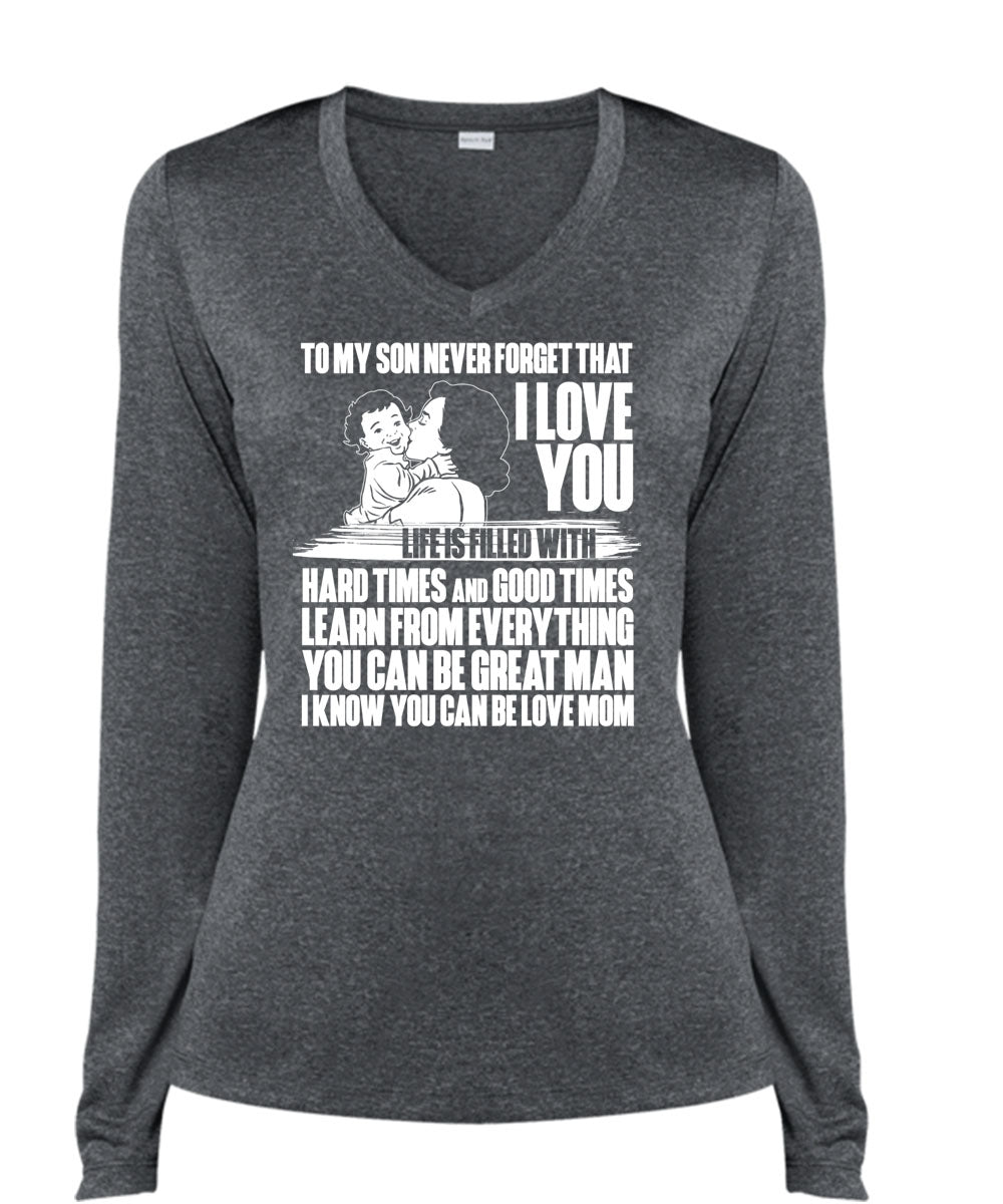 To My Son Never Forget T Shirt, I Love You T Shirt, Cool Shirt (Ladies LS Heather V-Neck)