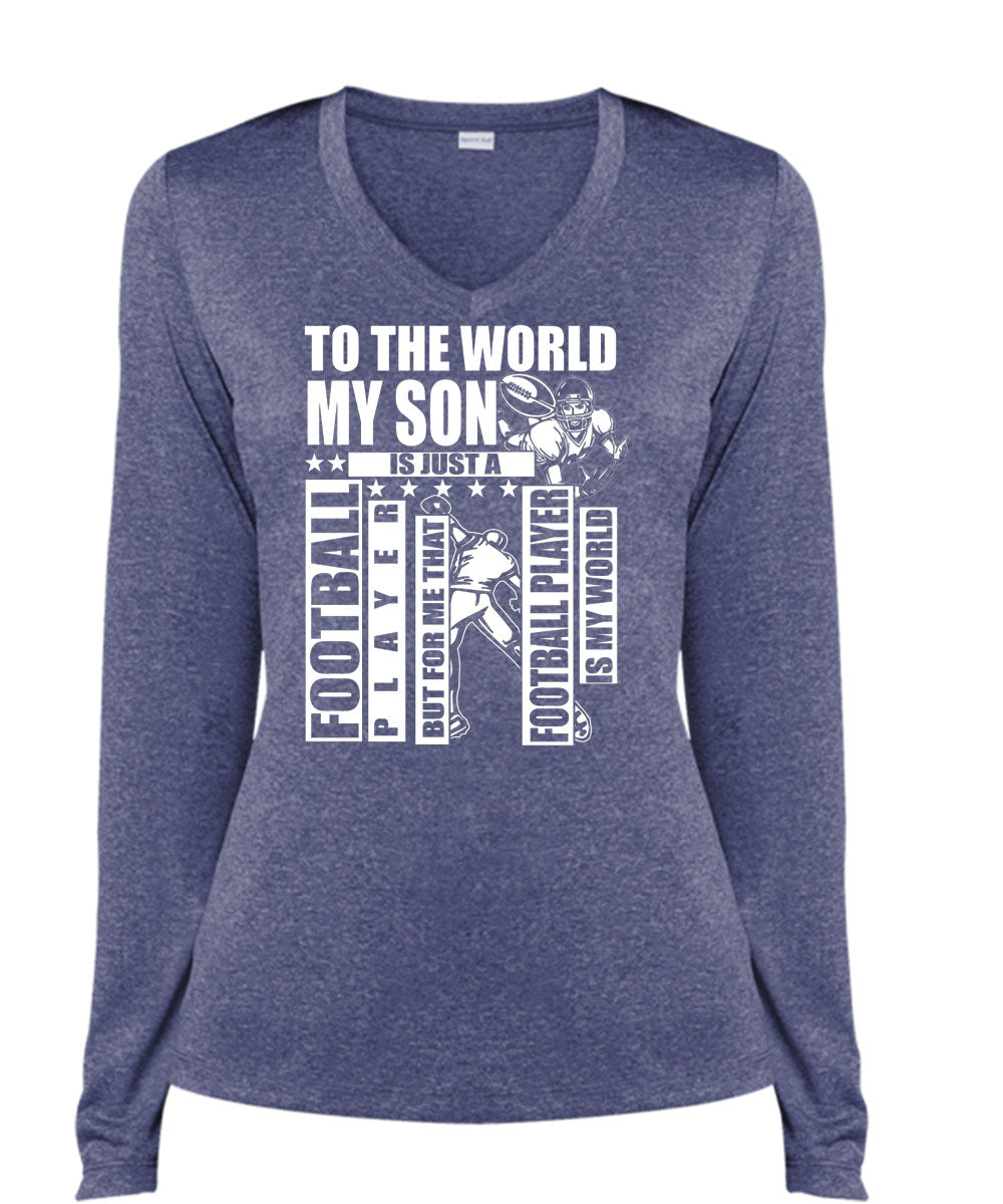 To The World My Son T Shirt, Football Player T Shirt, Cool Shirt (Ladies LS Heather V-Neck)