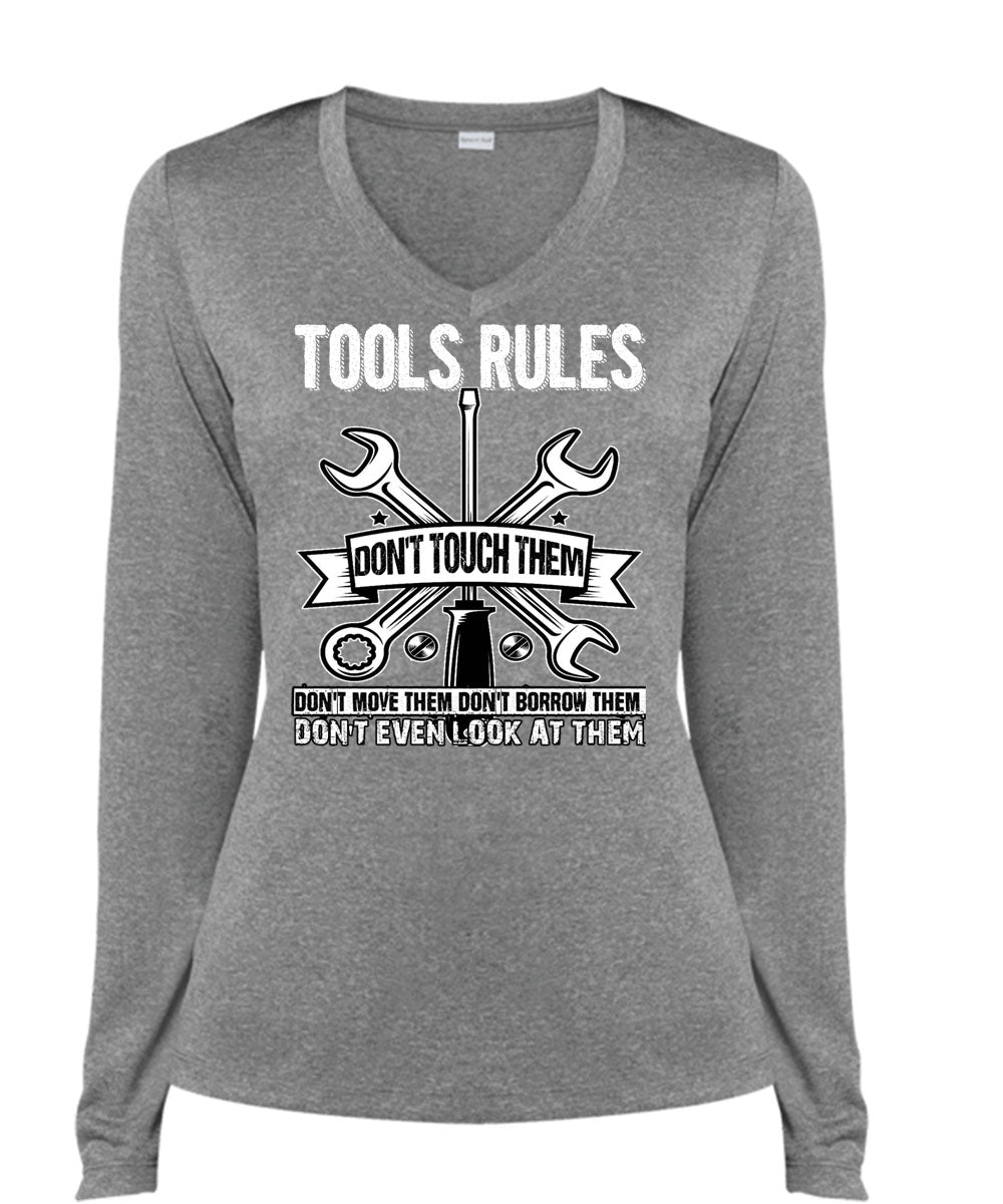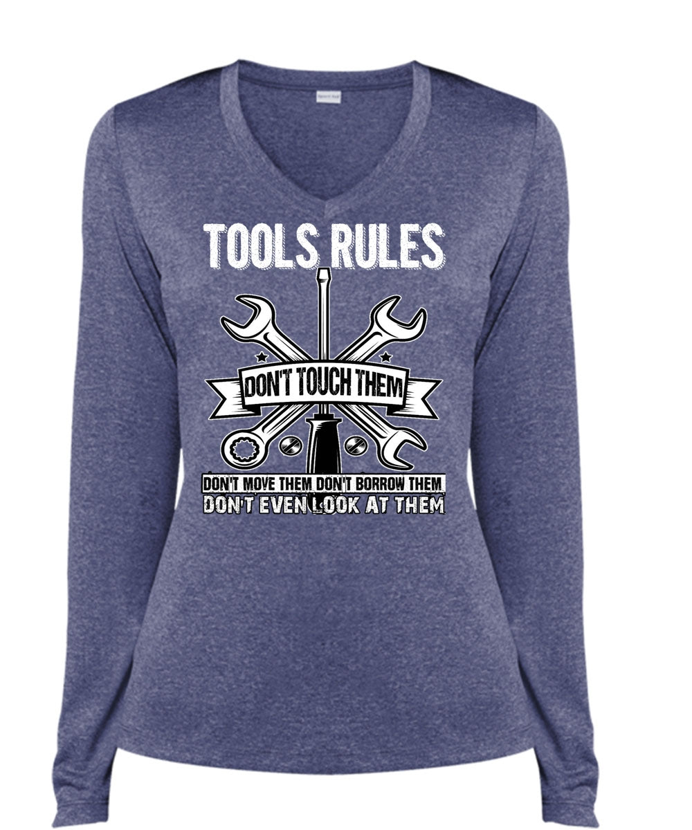 Tools Rules Don't Touch Them T Shirt, Being A Mechanic T Shirt, Cool Shirt (Ladies LS Heather V-Neck)
