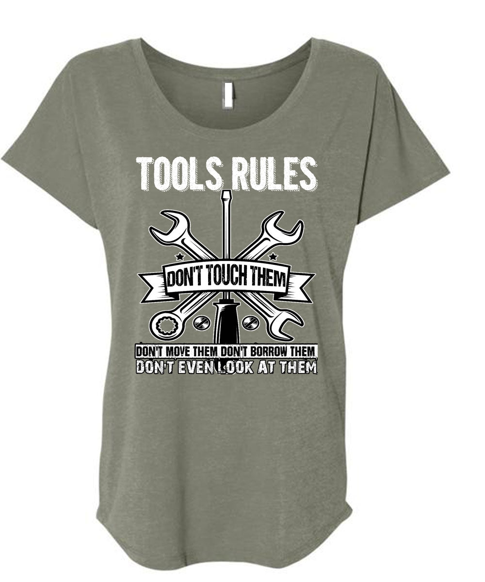 Tools Rules Don't Touch Them T Shirt, Being A Mechanic T Shirt, Cool Shirt (Ladies' Triblend Dolman Sleeve)