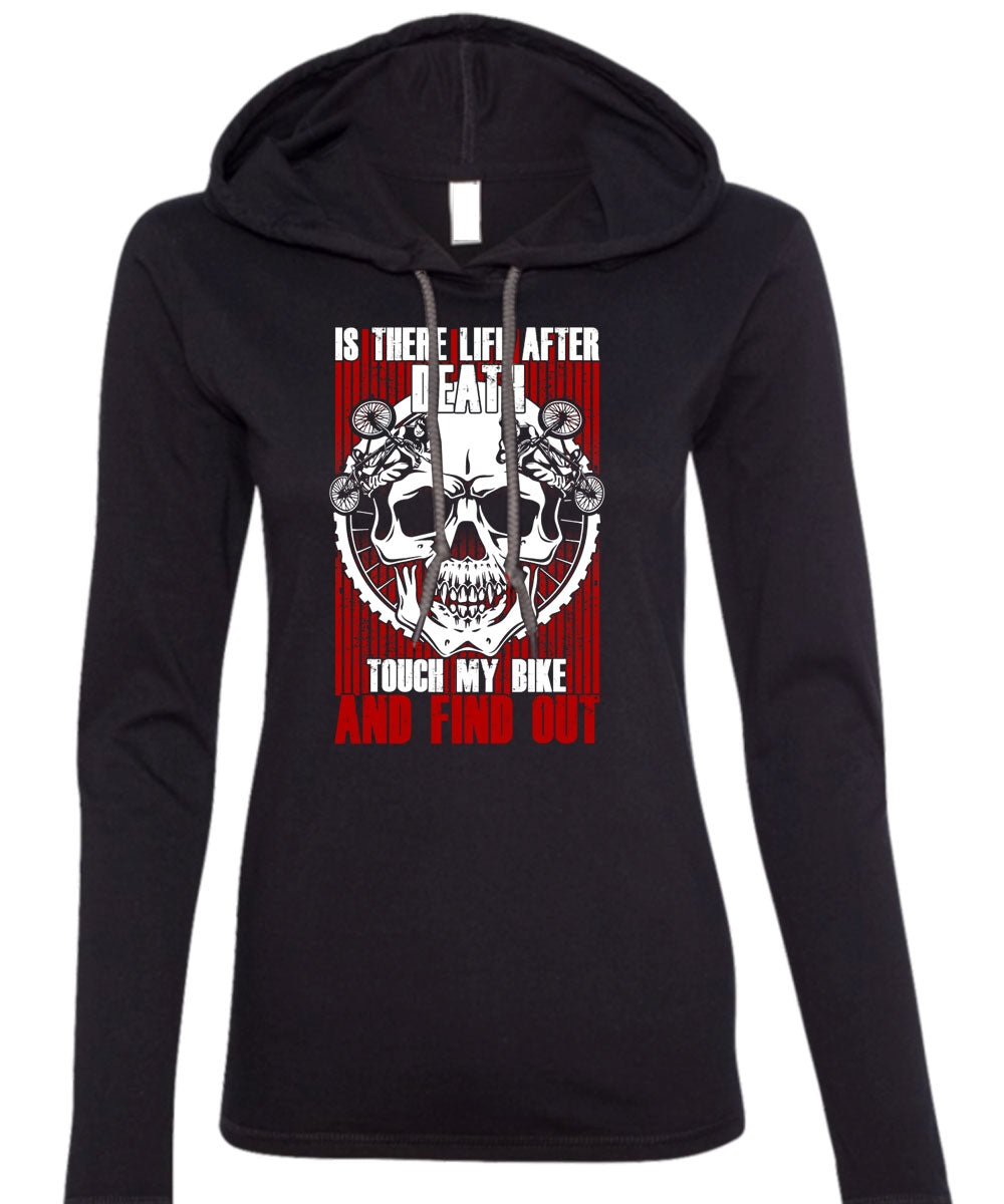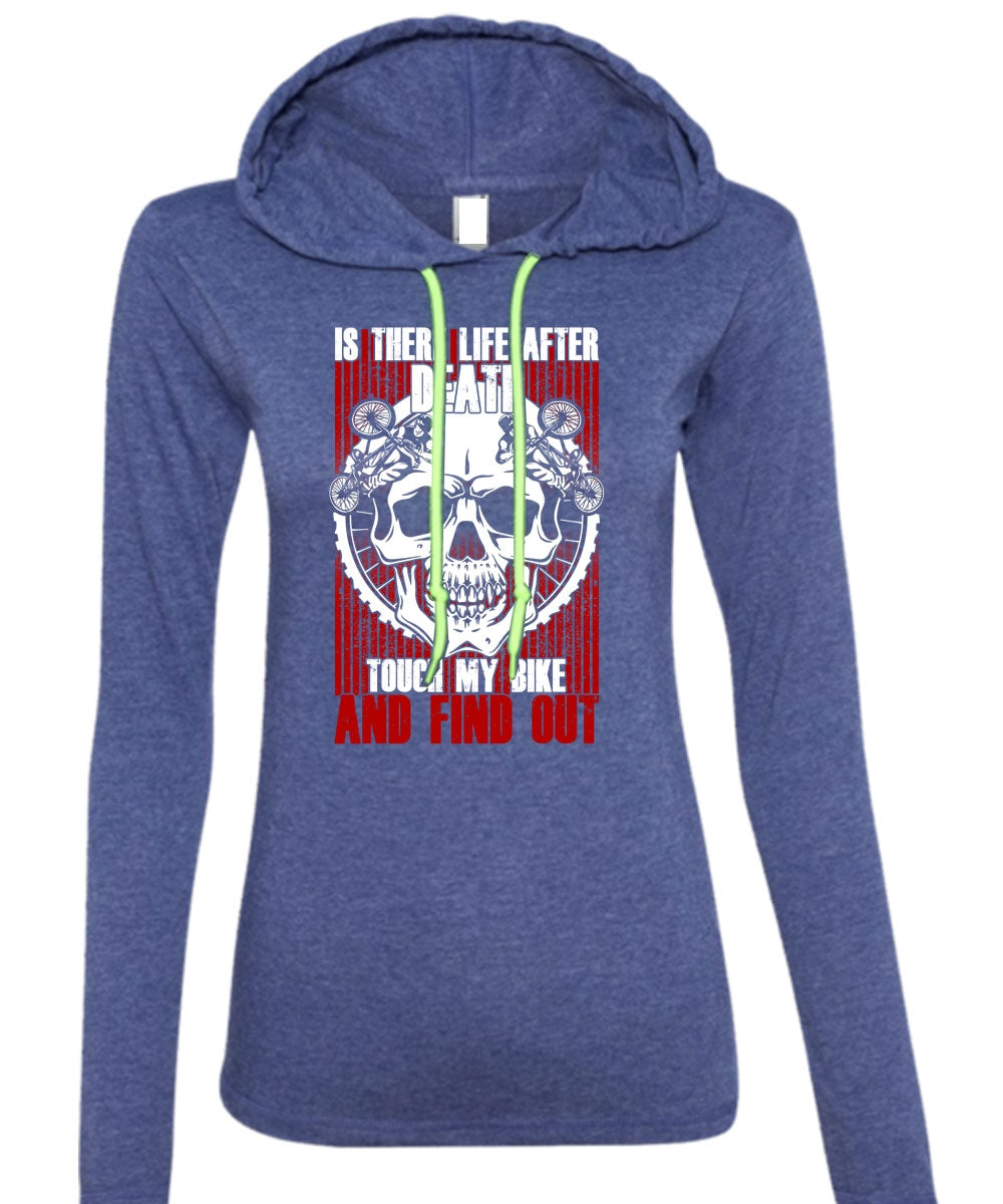 Touch My Bike And Find Out T Shirt, Being A Biker T Shirt (Anvil Ladies Ringspun Hooded)