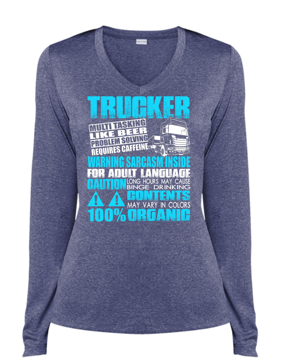 Trucker Multitasking Like Beer T Shirt, I Love Beer T Shirt, Cool Shirt (Ladies LS Heather V-Neck)