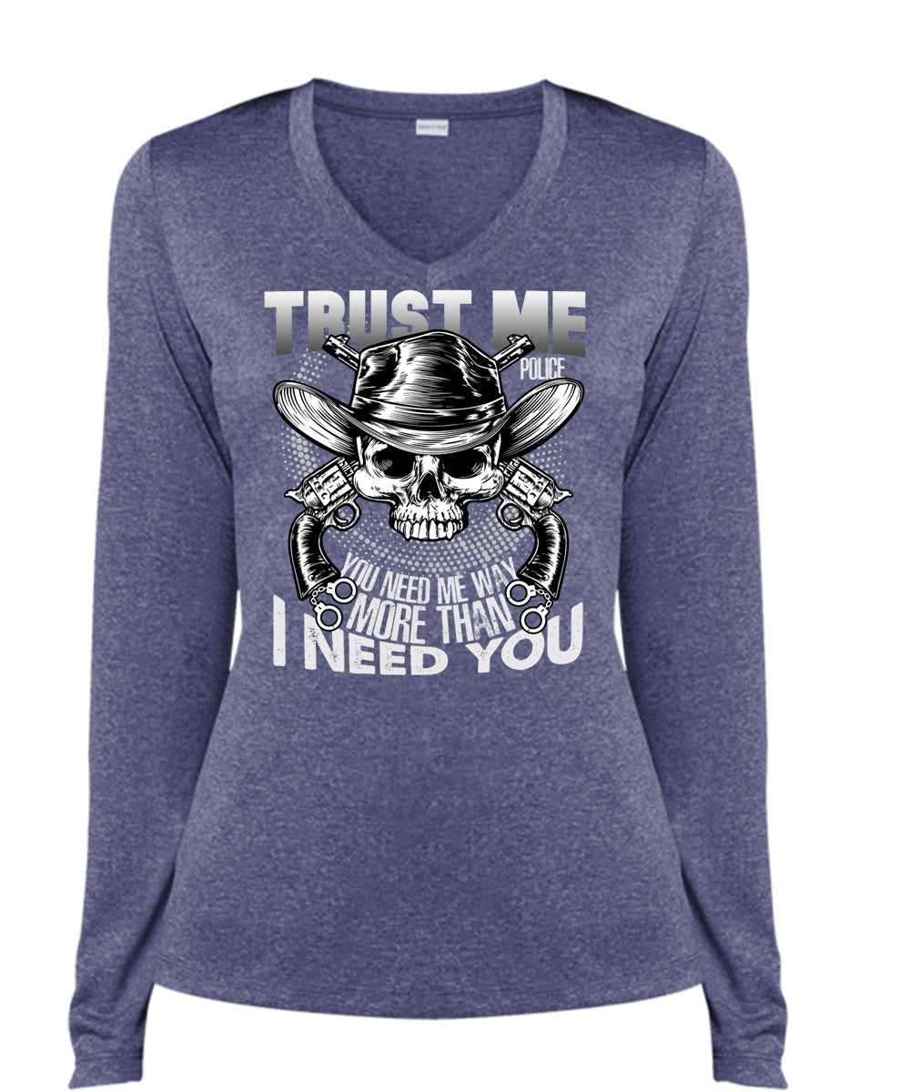 Trust Me Police T Shirt, I Need You T Shirt, Cool Shirt (Ladies LS Heather V-Neck)