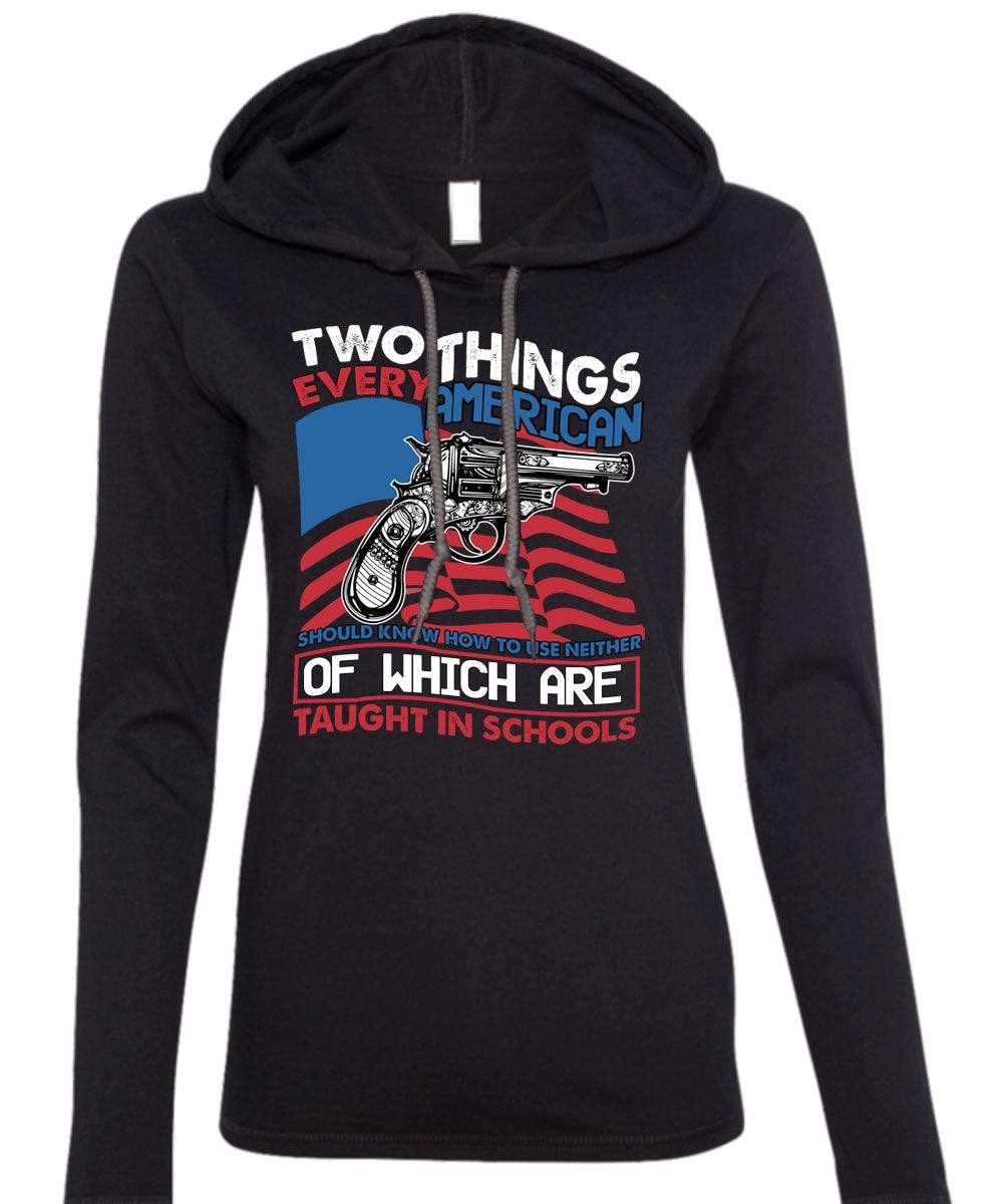Two Things Every American T Shirt, Being A Gunner T Shirt (Anvil Ladies Ringspun Hooded)