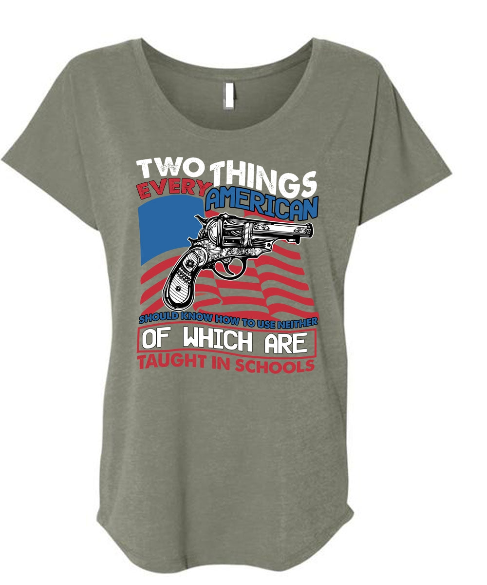 Two Things Every American T Shirt, Being A Gunner T Shirt, Cool Shirt (Ladies' Triblend Dolman Sleeve)