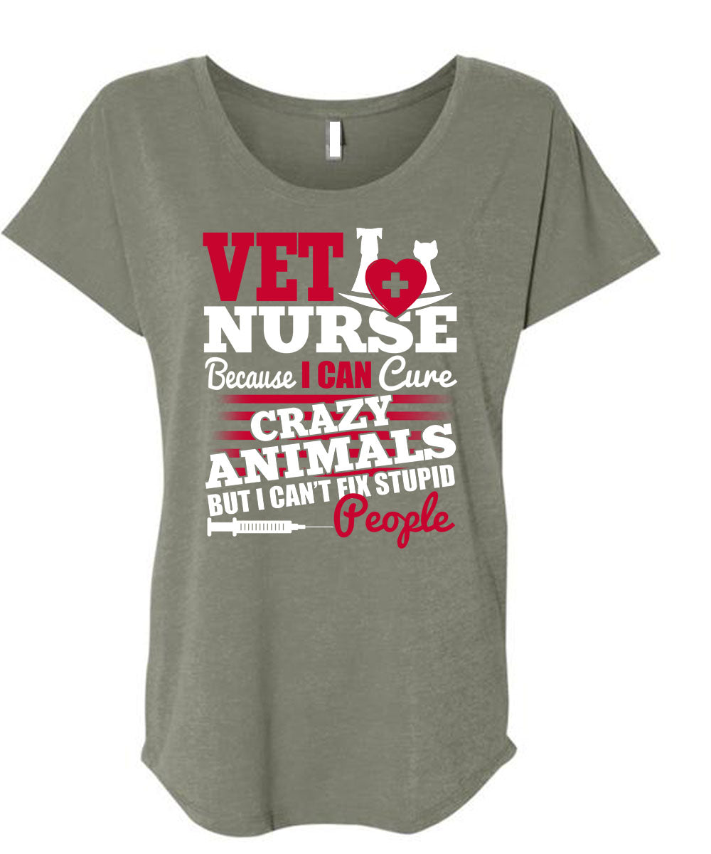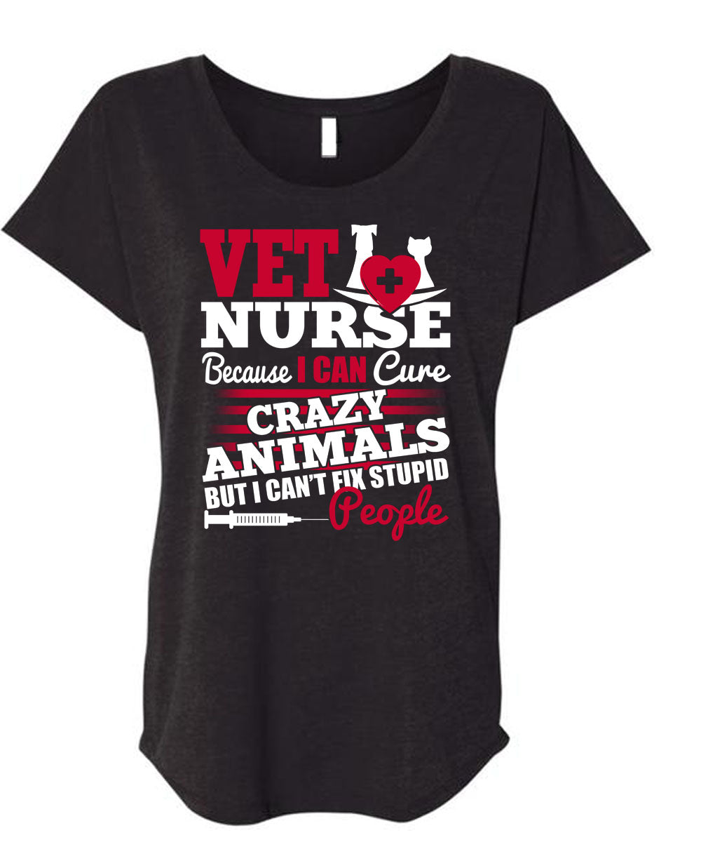Vet Nurse T Shirt, Crazy Animals T Shirt, Cool Shirt (Ladies' Triblend Dolman Sleeve)