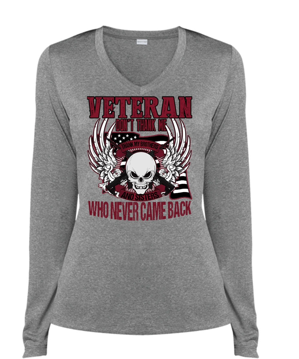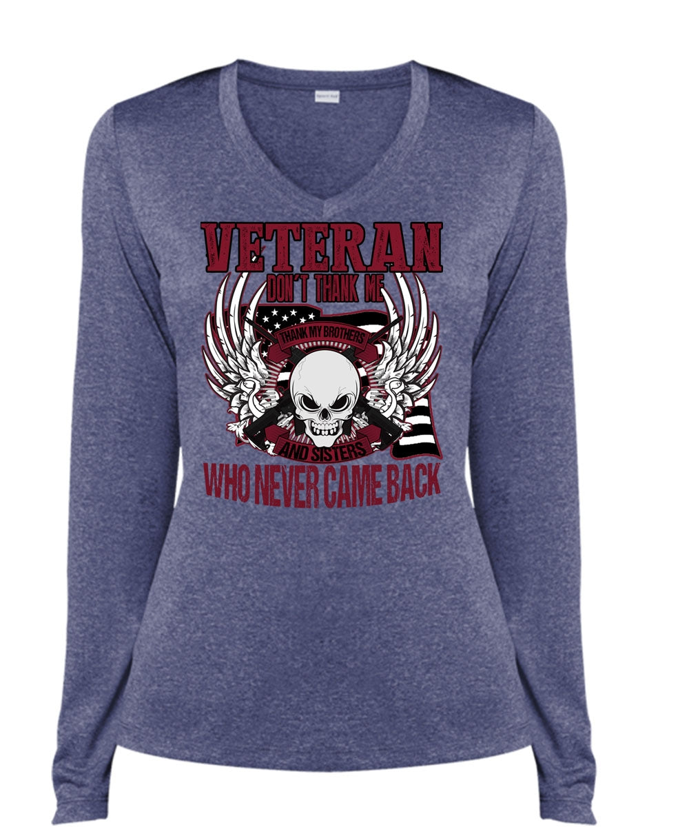 Veteran Don't Thank Me T Shirt, Thank My Brothers T Shirt, Cool Shirt (Ladies LS Heather V-Neck)