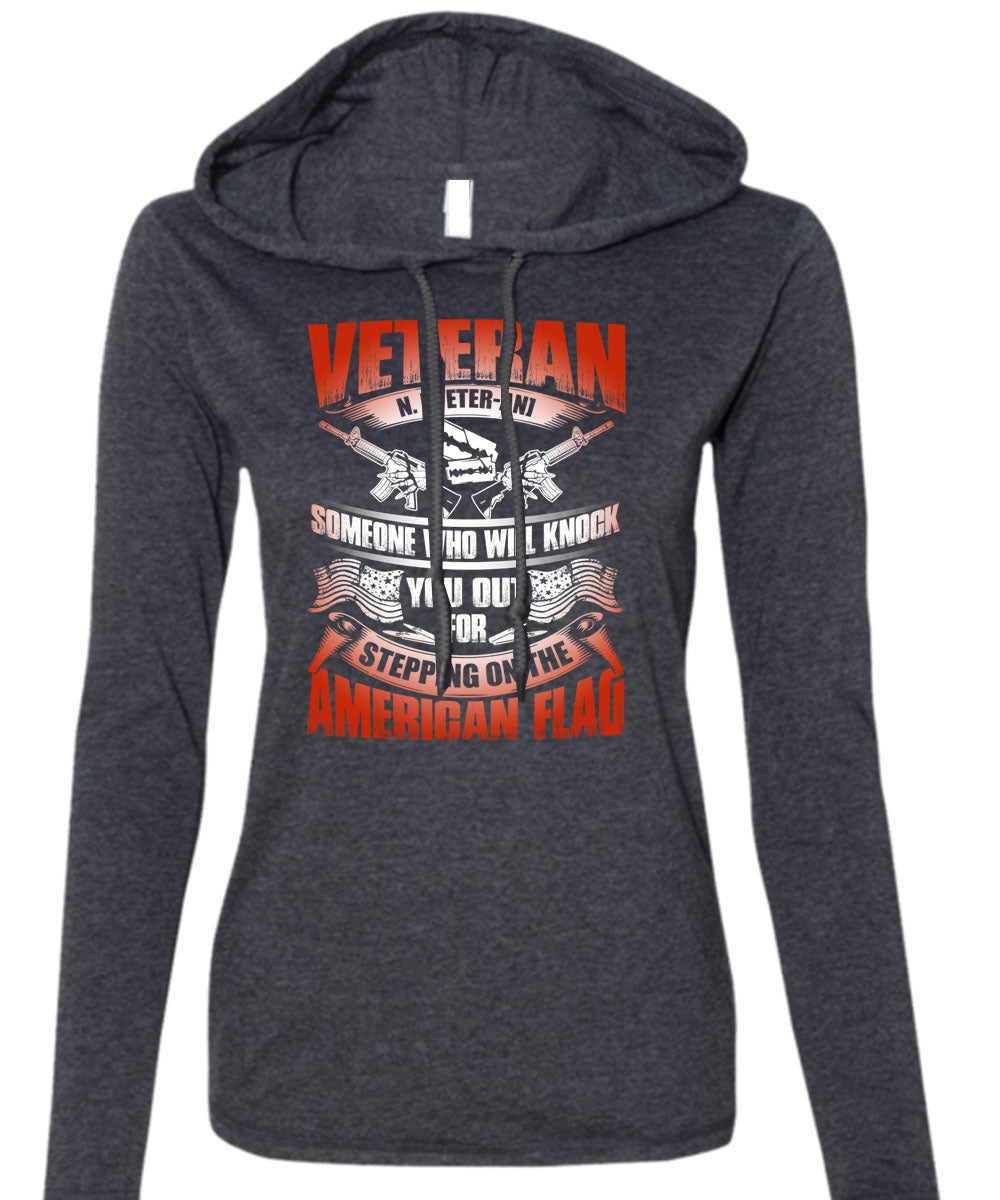 Veteran Who Will Knock You Out T Shirt, American Flag T Shirt (Anvil Ladies Ringspun Hooded)