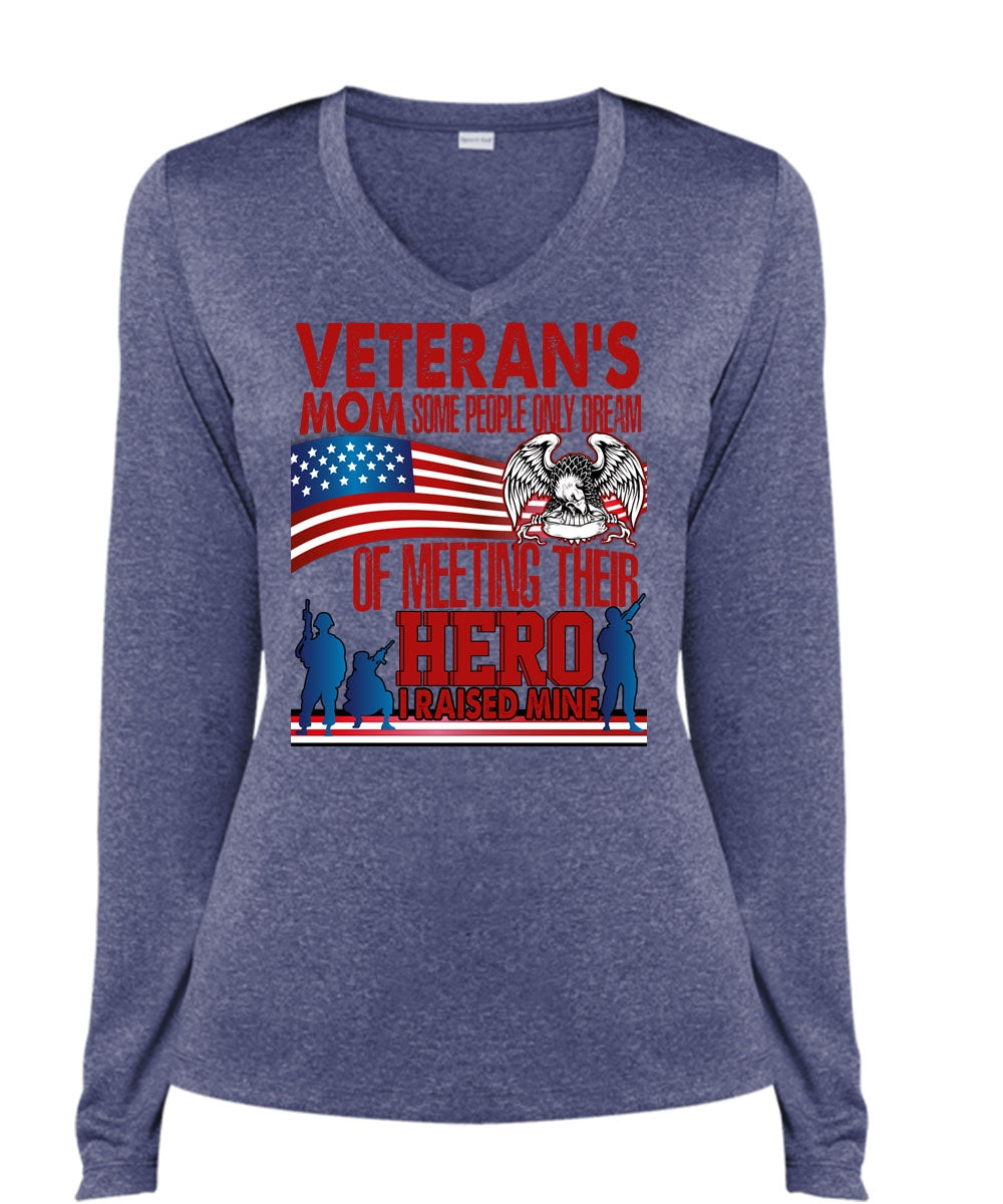 Veteran's Mom T Shirt, Being A Veteran T Shirt, Cool Shirt (Ladies LS Heather V-Neck)
