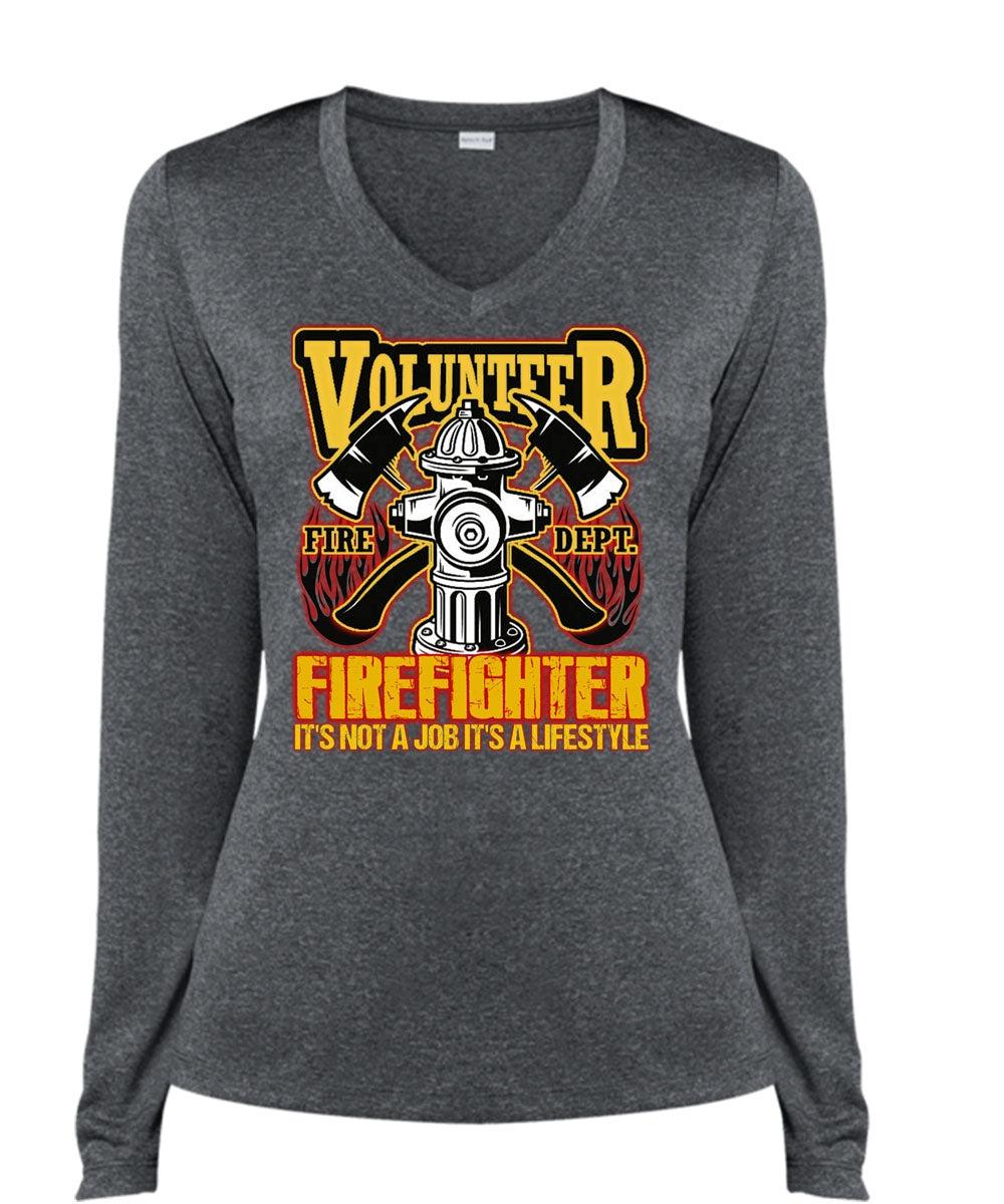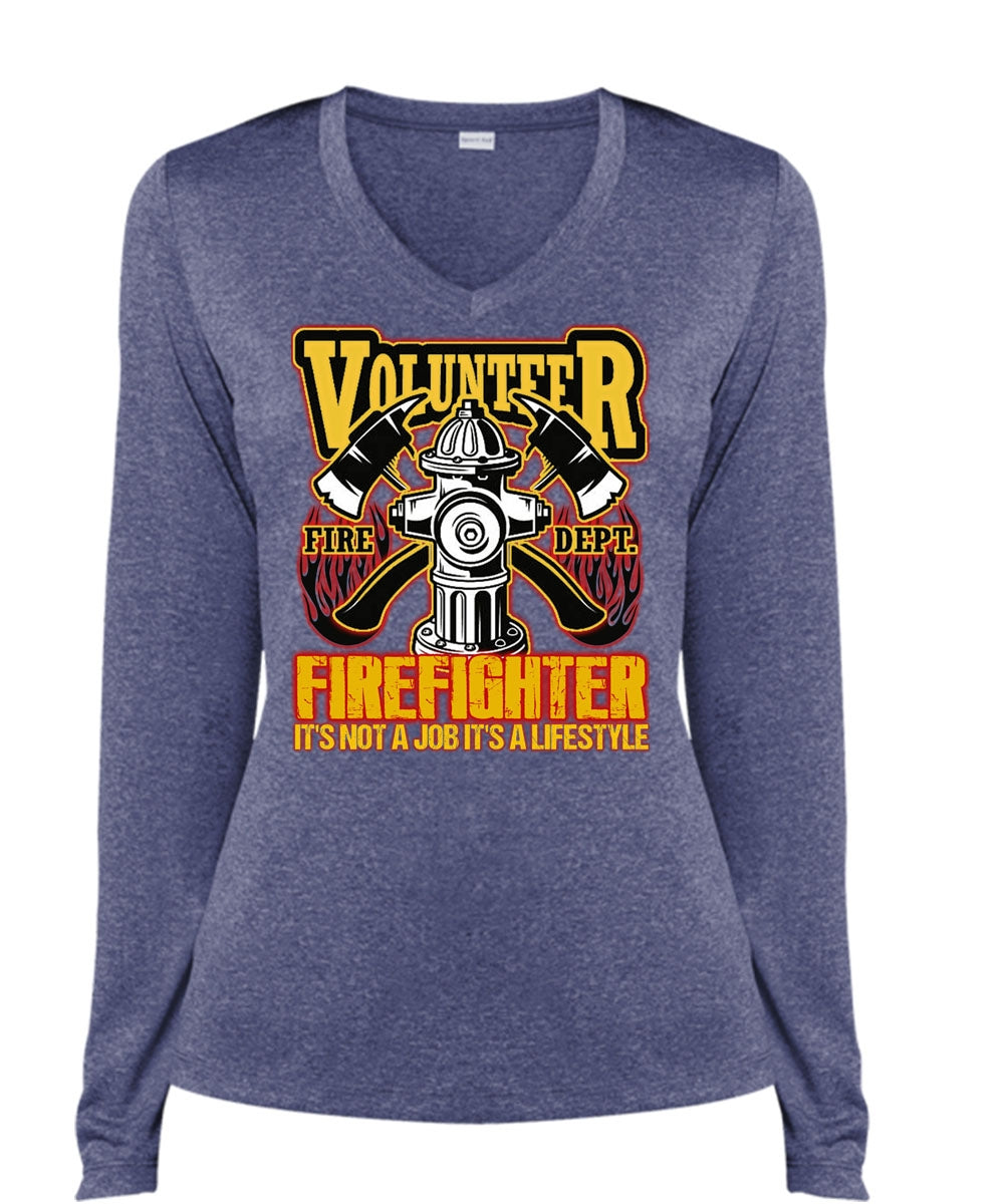 Volunteer Firefighter T Shirt, Being A Firefighter T Shirt, Cool Shirt (Ladies LS Heather V-Neck)