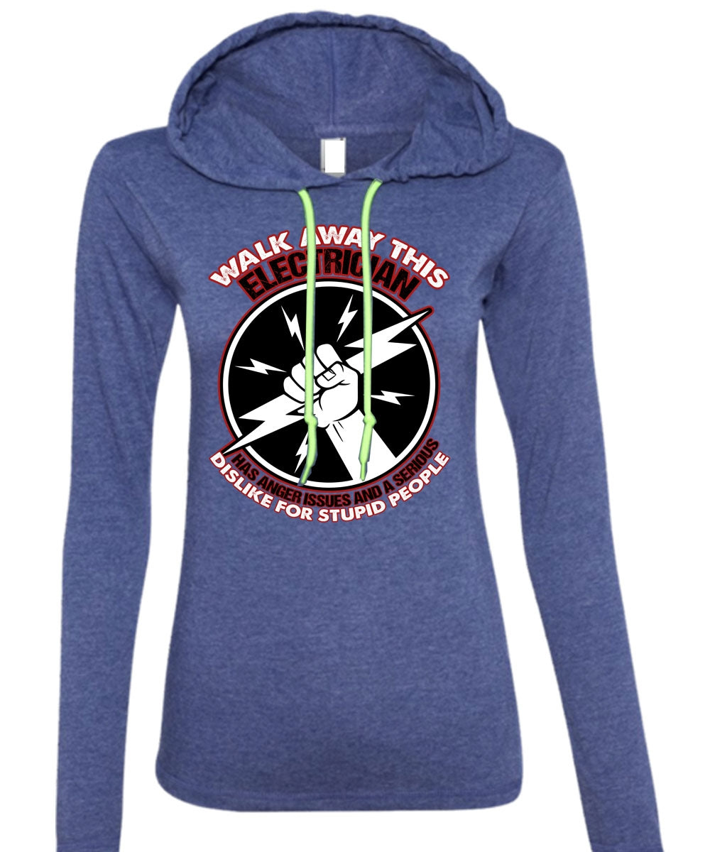 Walk Away This Electrician T Shirt, Dislike For Stupid People T Shirt (Anvil Ladies Ringspun Hooded)