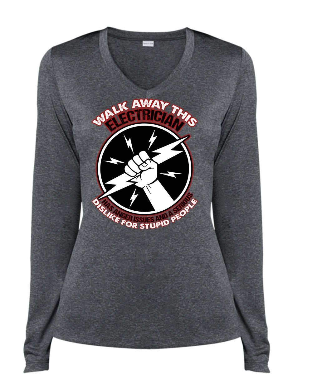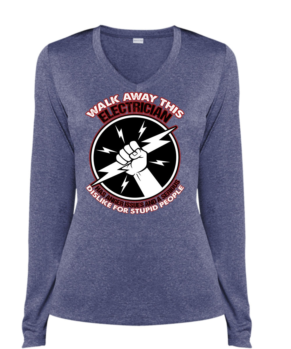 Walk Away This Electrician T Shirt, Dislike For Stupid People T Shirt, Cool Shirt (Ladies LS Heather V-Neck)