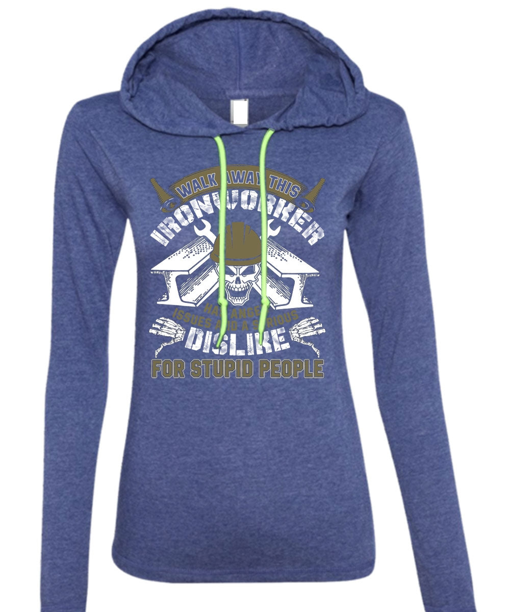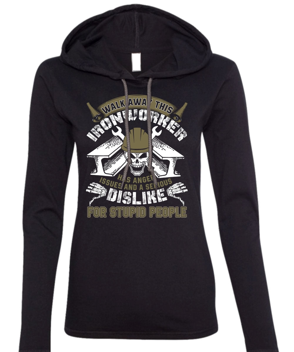 Walk Away This Ironworker T Shirt, Being A Dad T Shirt (Anvil Ladies Ringspun Hooded)
