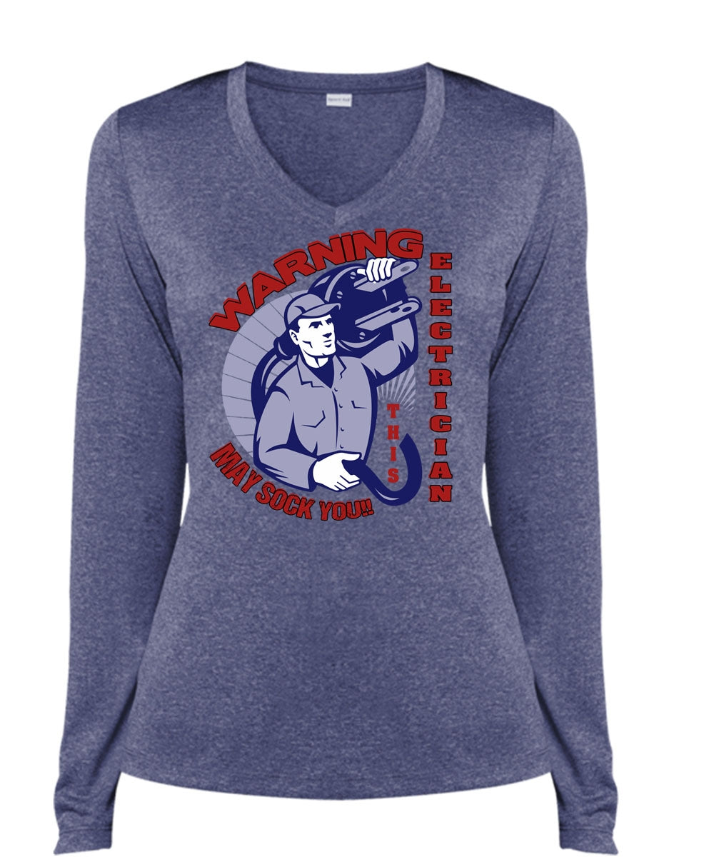 Warning Electrician T Shirt, Being An Electrician T Shirt, Cool Shirt (Ladies LS Heather V-Neck)