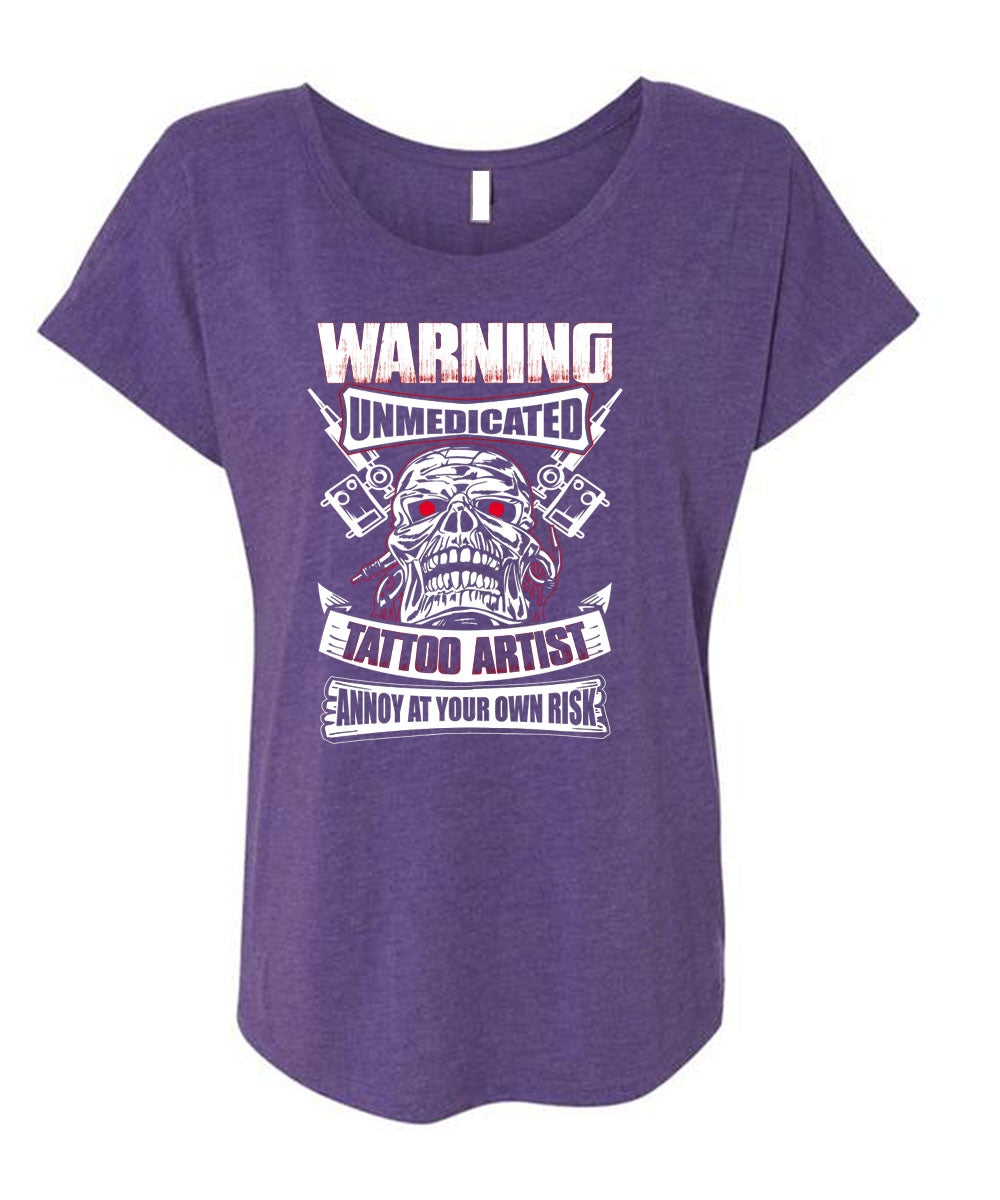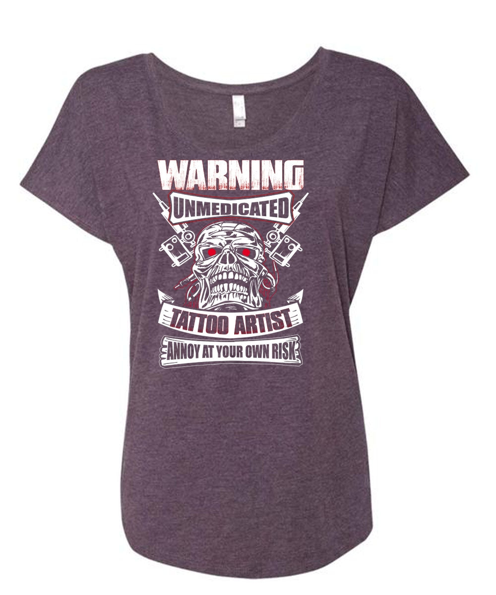 Warning Unmedicated Tattoo Artist T Shirt, My Favorite T Shirt, Cool Shirt (Ladies' Triblend Dolman Sleeve)